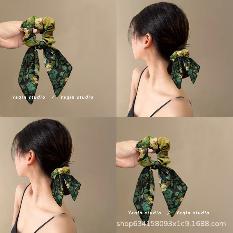 新しいワイルドローズゴッホリボンヘアバンド星空サテン油絵ヘアバンドヘアロープゴムバンドヘアロープヘアアクセサリー