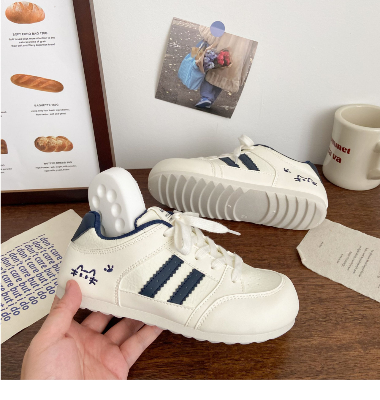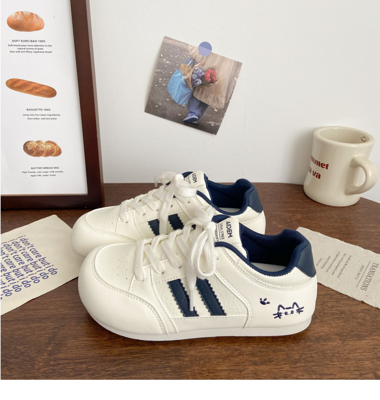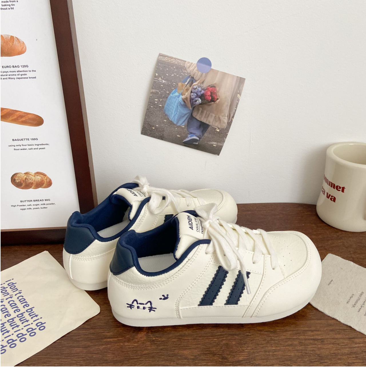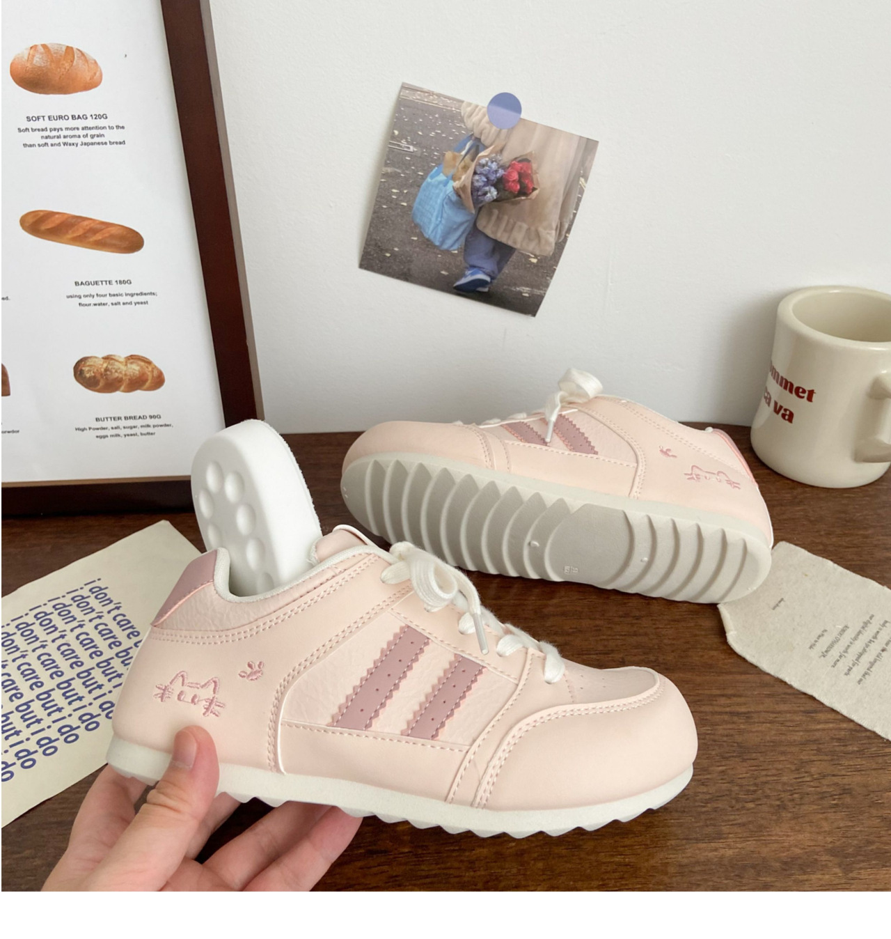 2025春新款可爱刺绣KT猫板鞋时尚百搭德训鞋女chic平底圆头休闲鞋