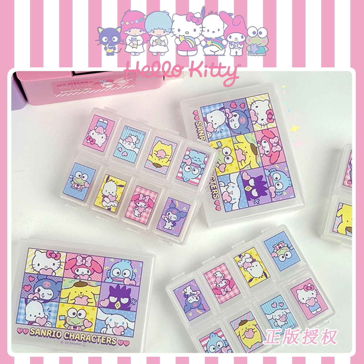 本物のサンリオキティメロディーピンクガールプラスチック収納ボックスポータブルコンパートメントかわいい分離ピルボックス