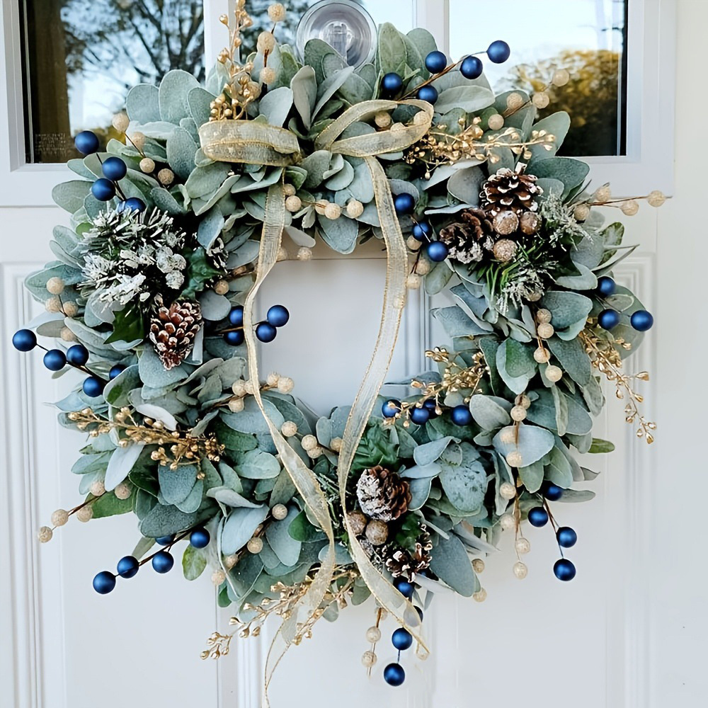 跨境圣诞节兔耳叶浆果花环庭院装扮道具秋季仿真花松果藤圈门挂