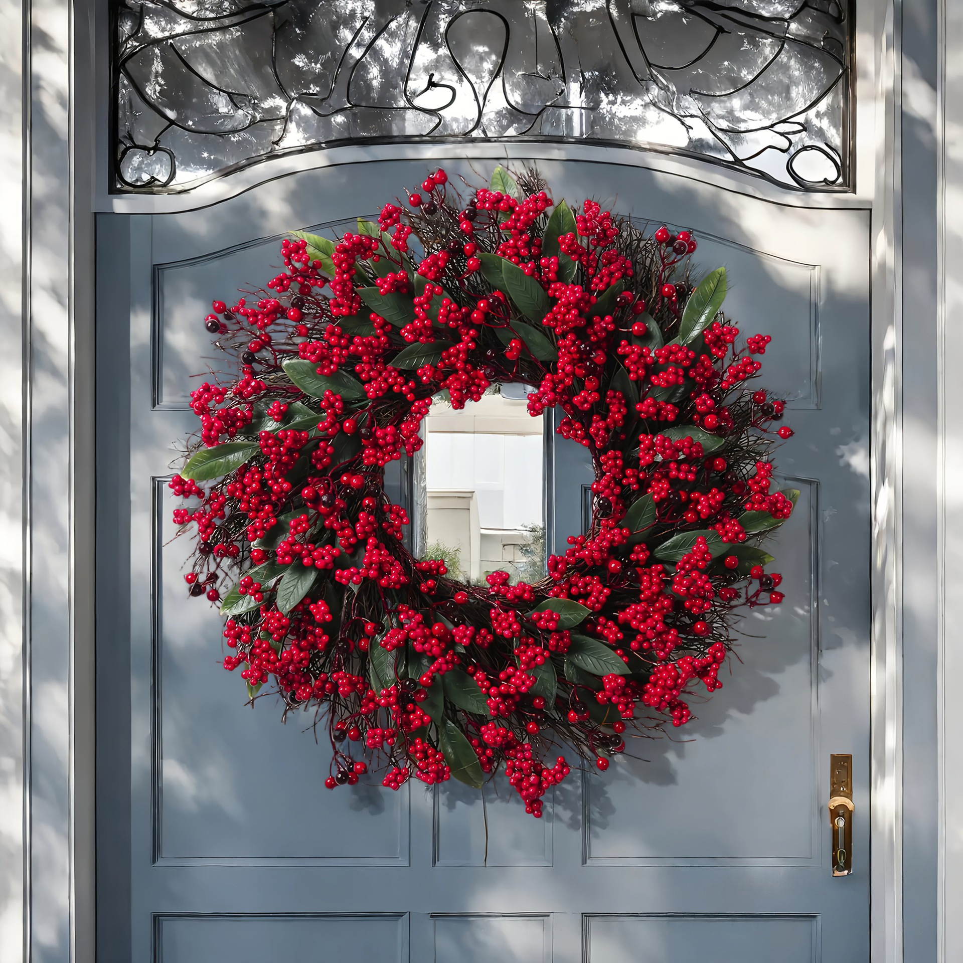 港之恋圣诞花环红果花环亚马逊爆款跨境热卖节日装饰商场酒店花环