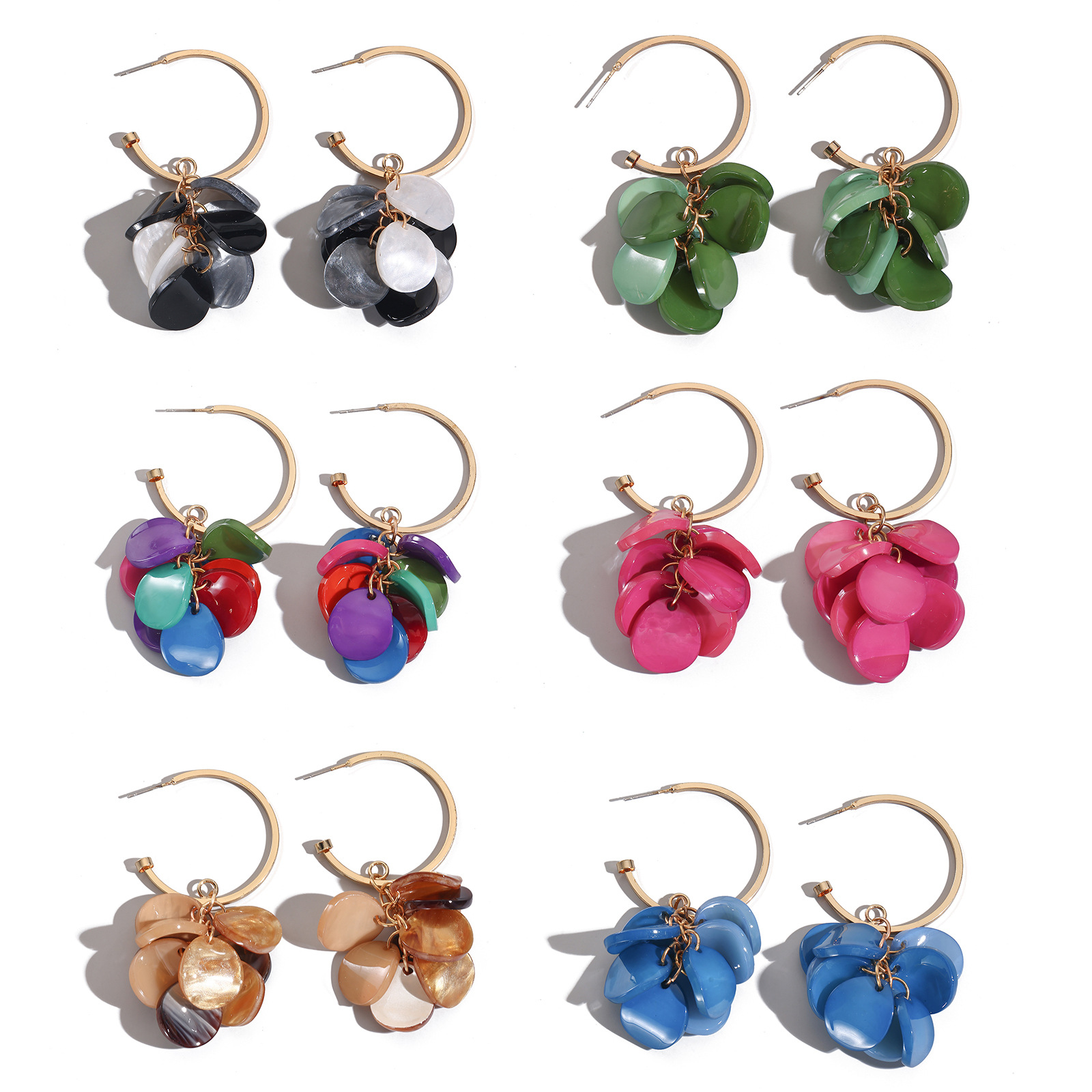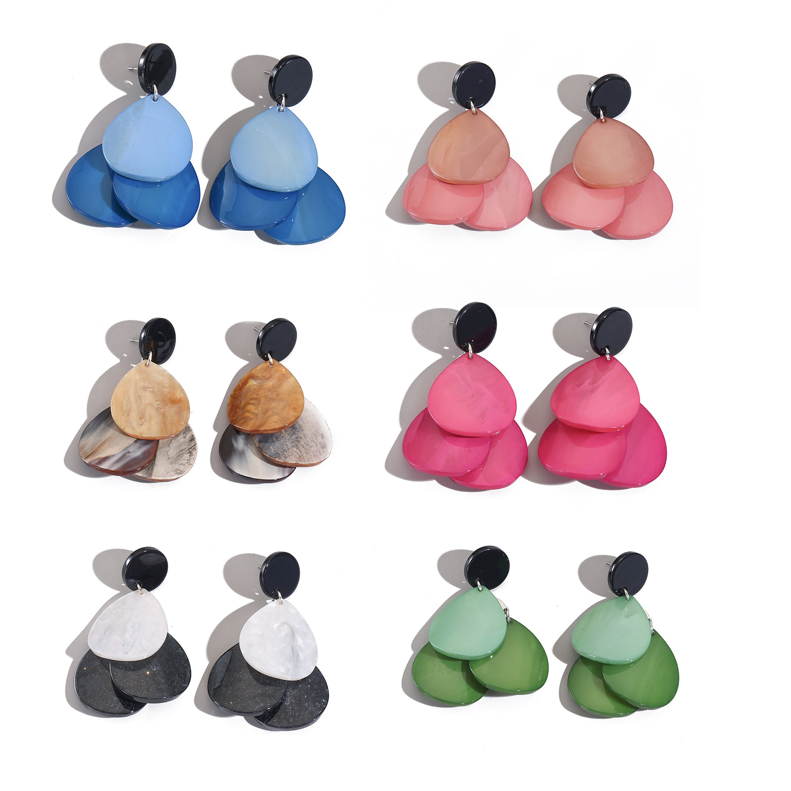 欧美简约亚克力手工几何耳环 个性百搭不规则多层花瓣耳坠女配饰