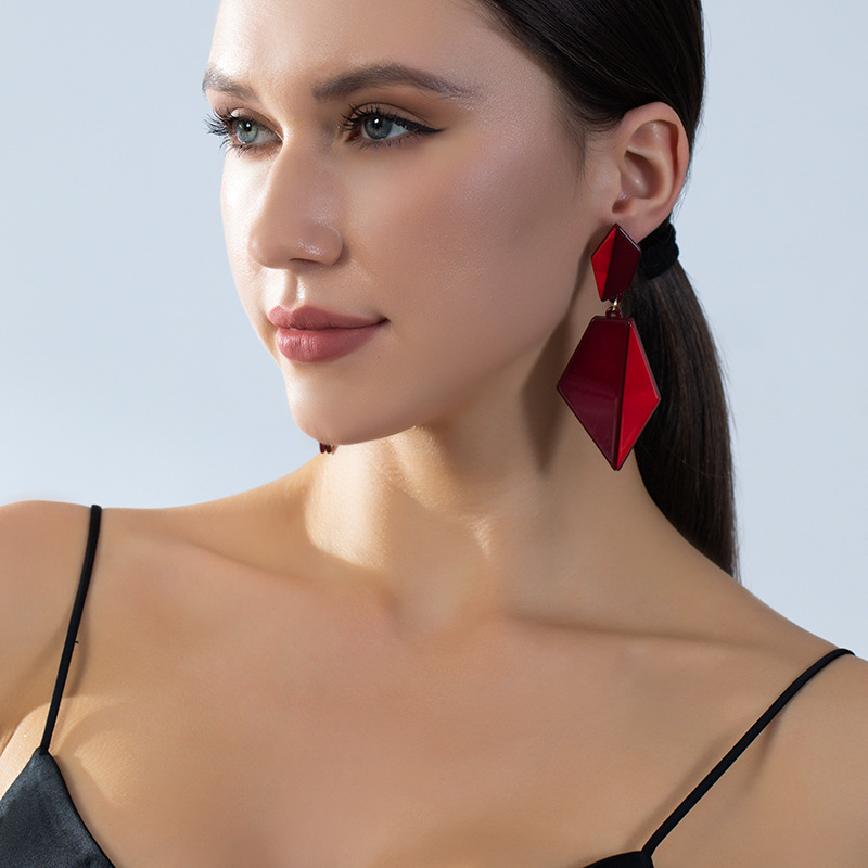 新款时尚玫瑰粉几何亚克力耳环女 创意夸张撞色轻奢耳坠独特饰品