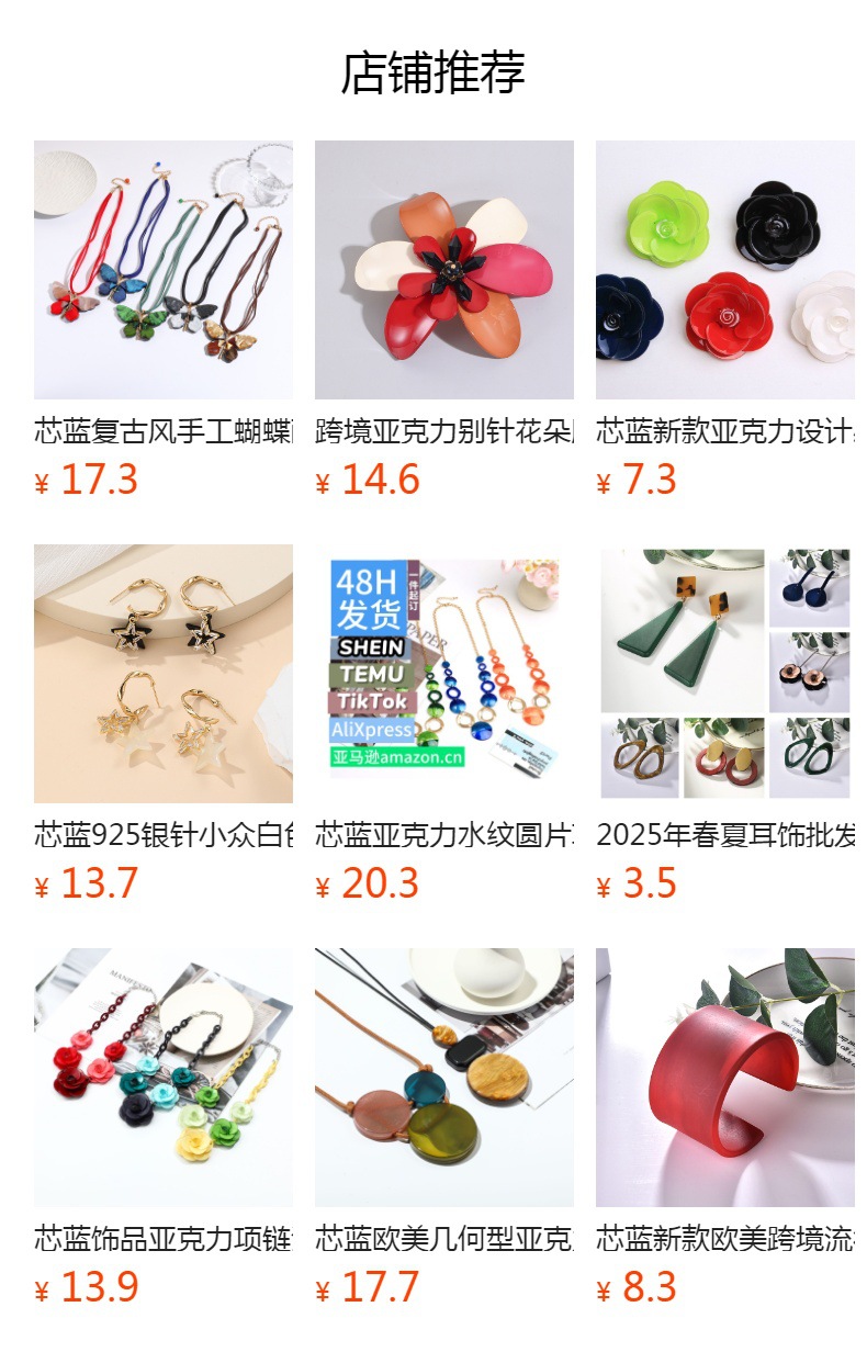 新款夏日亚克力耳环批发 森系清新天然复古新中式手作设计感耳饰