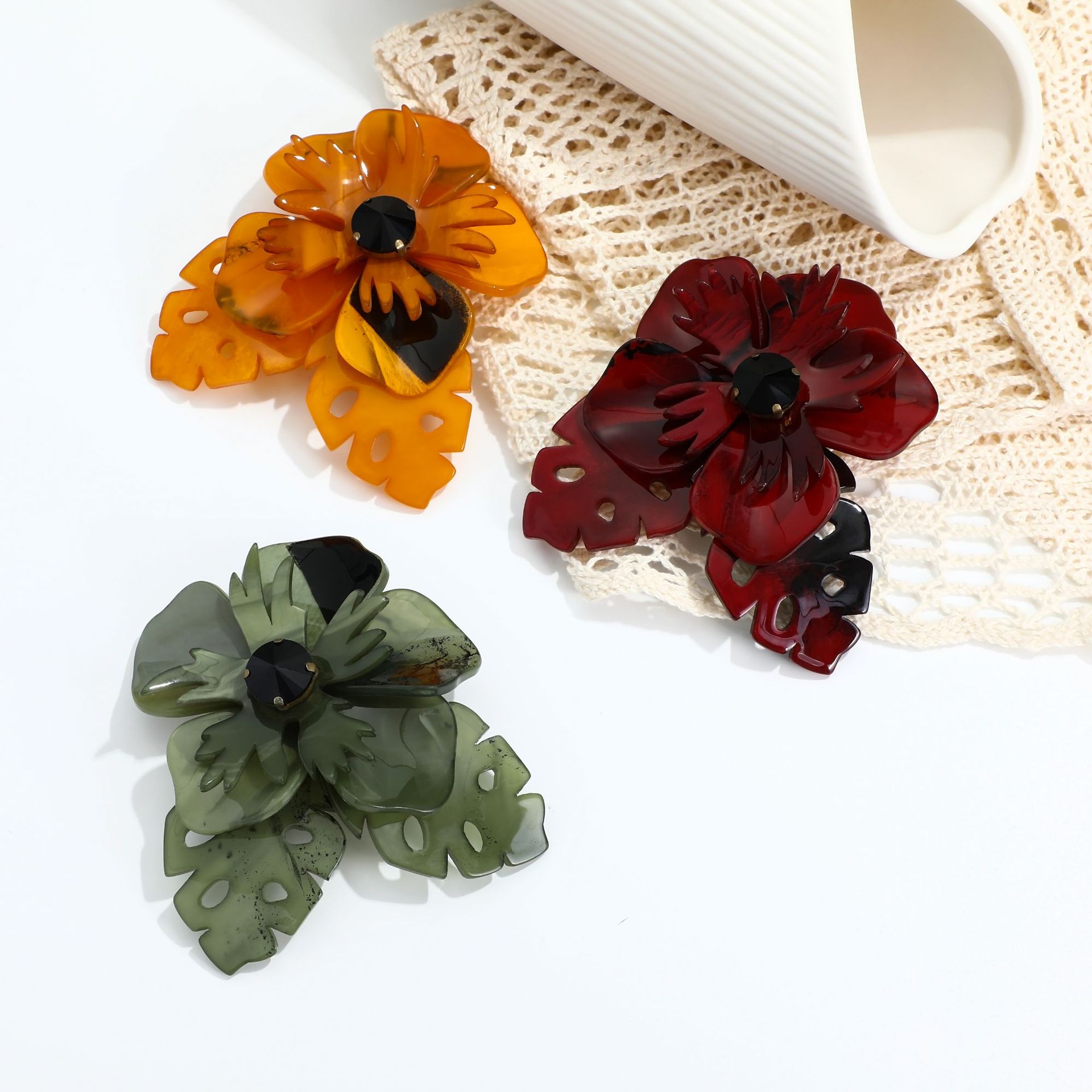 2022新型韓国版レトロアクリル花ブローチ個性小衆胸花高品質ピン卸売り