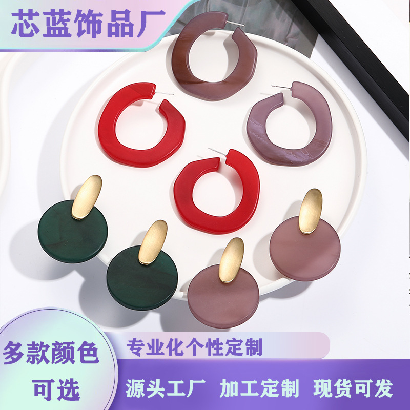 新款小香风亚克力夸张耳环 手工几何耳饰女 百搭小众气质耳坠批发
