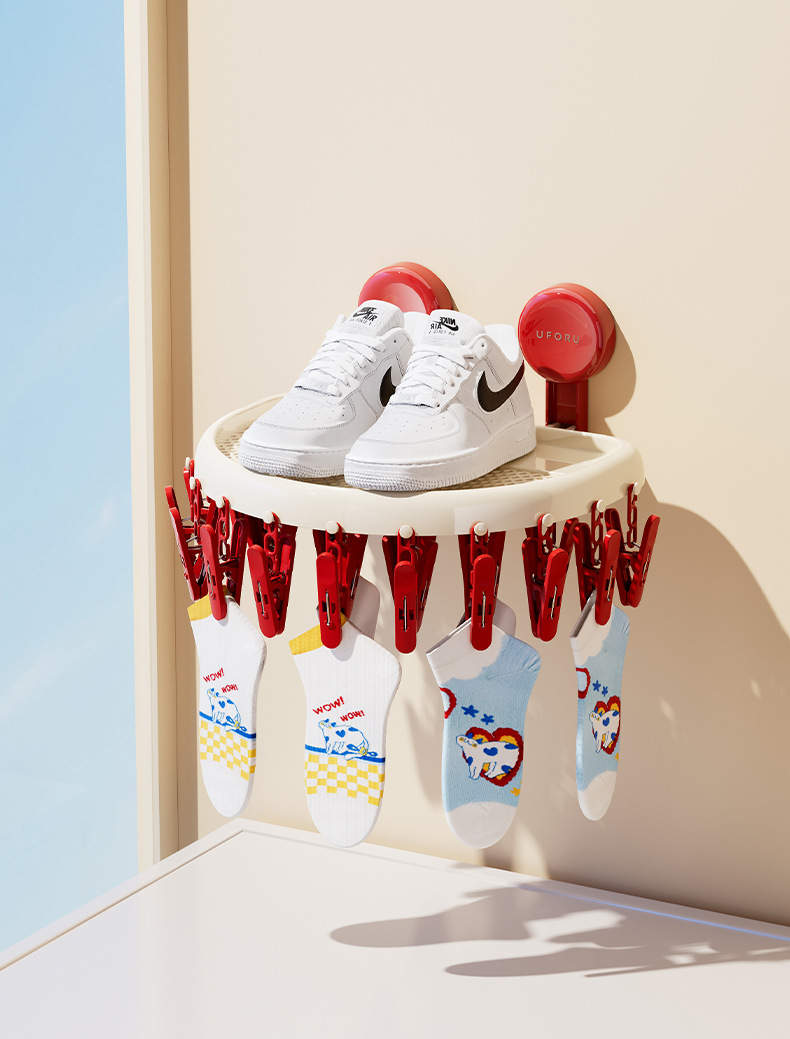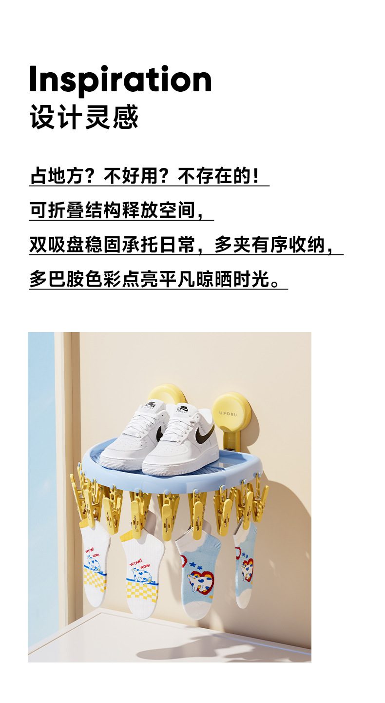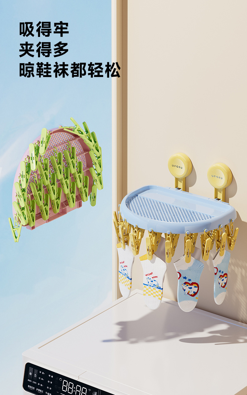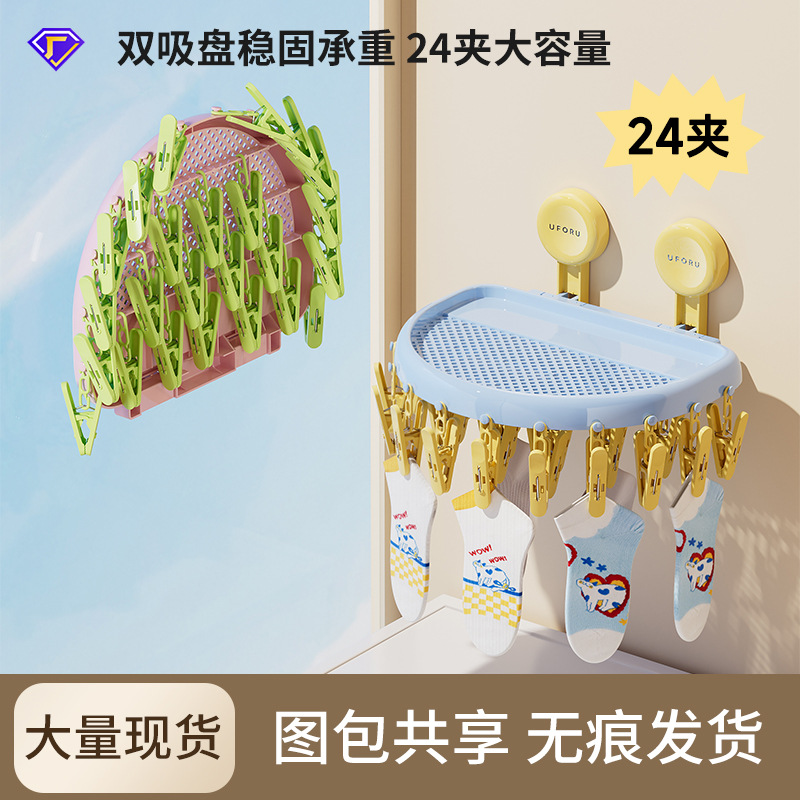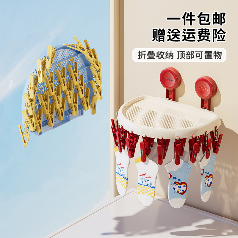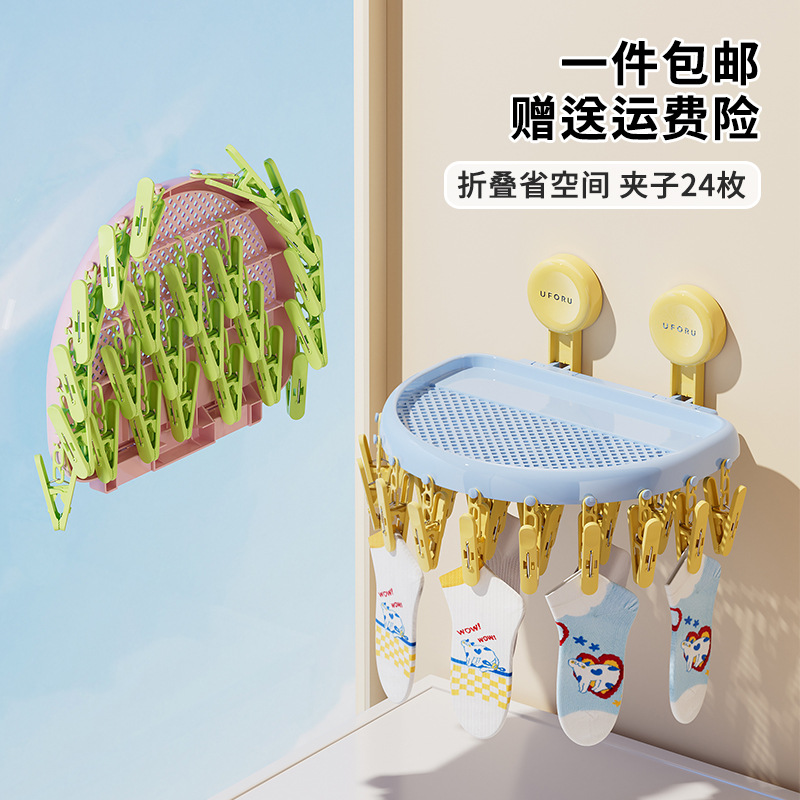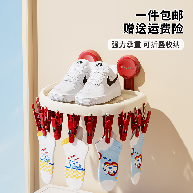 吸盘折叠衣架袜子晾晒架免打孔多功能收纳神器家用宿舍阳台袜子夹