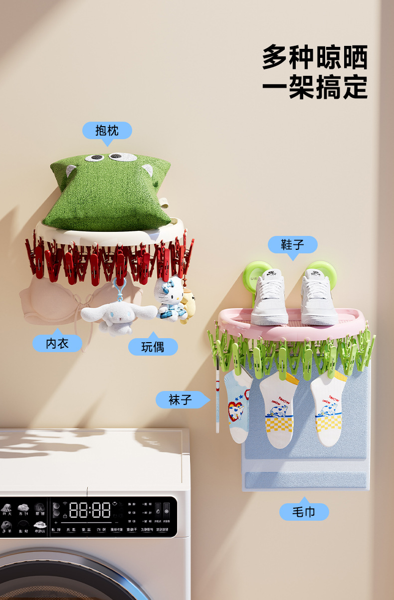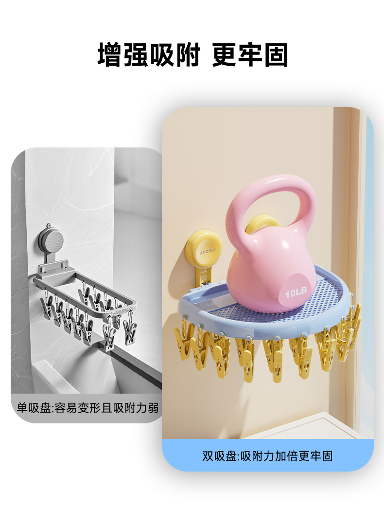 吸盘晾衣架宿舍阳台内衣内裤晒鞋子袜子神器无痕多夹子折叠晾晒架