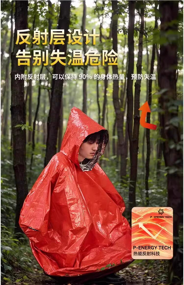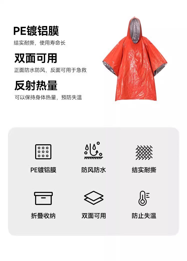 户外便携应急雨衣生存露营应急防失温雨衣保温保暖户外徒步雨披