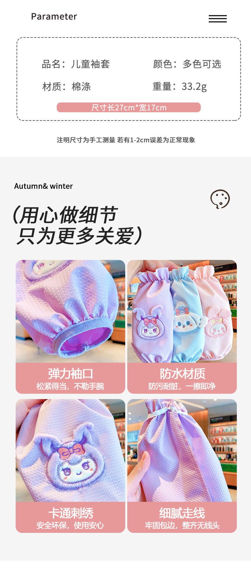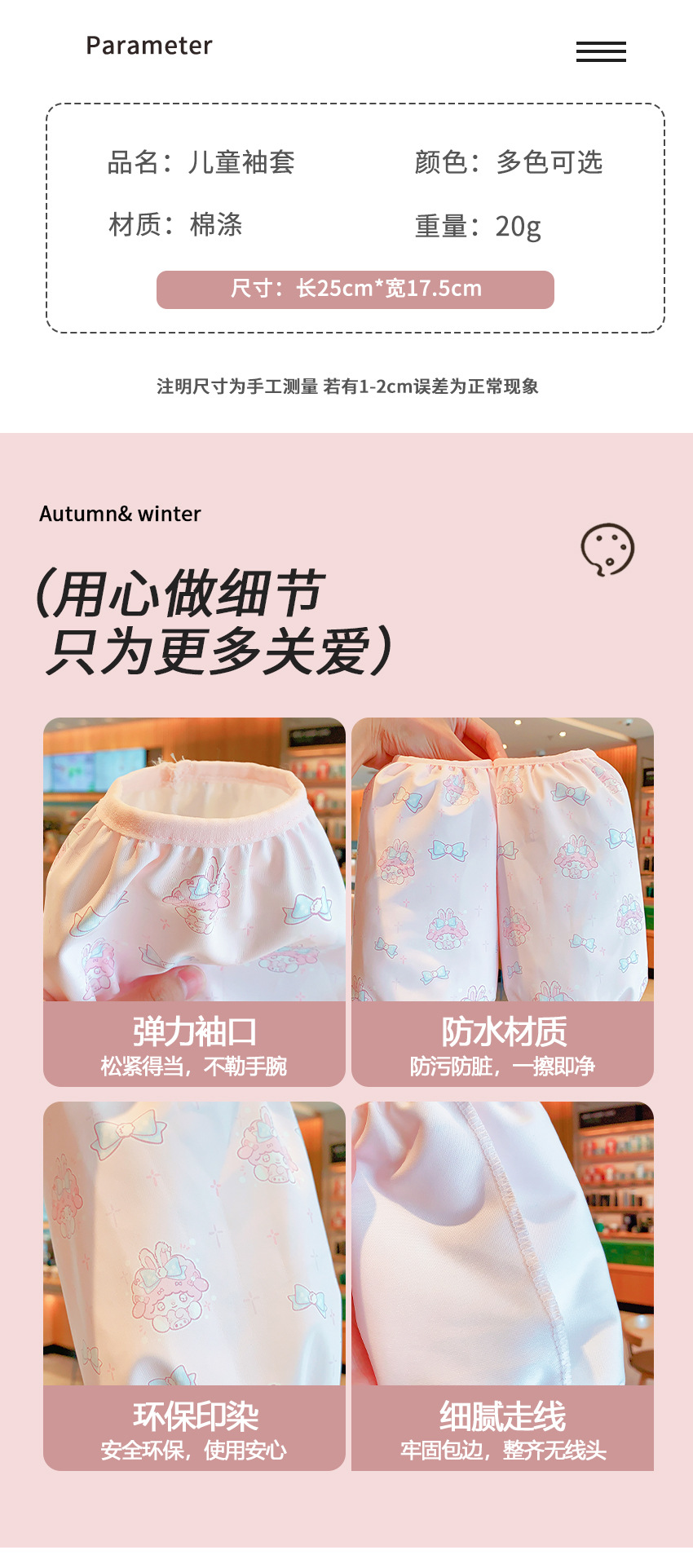 儿童库洛米防污耐脏袖套秋冬季婴幼儿防水袖套男童女童卡通小护袖