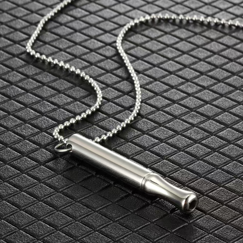 跨境亚马逊热销不锈钢口哨解压焦虑冥想正念呼吸瑜伽钛钢吊坠项链