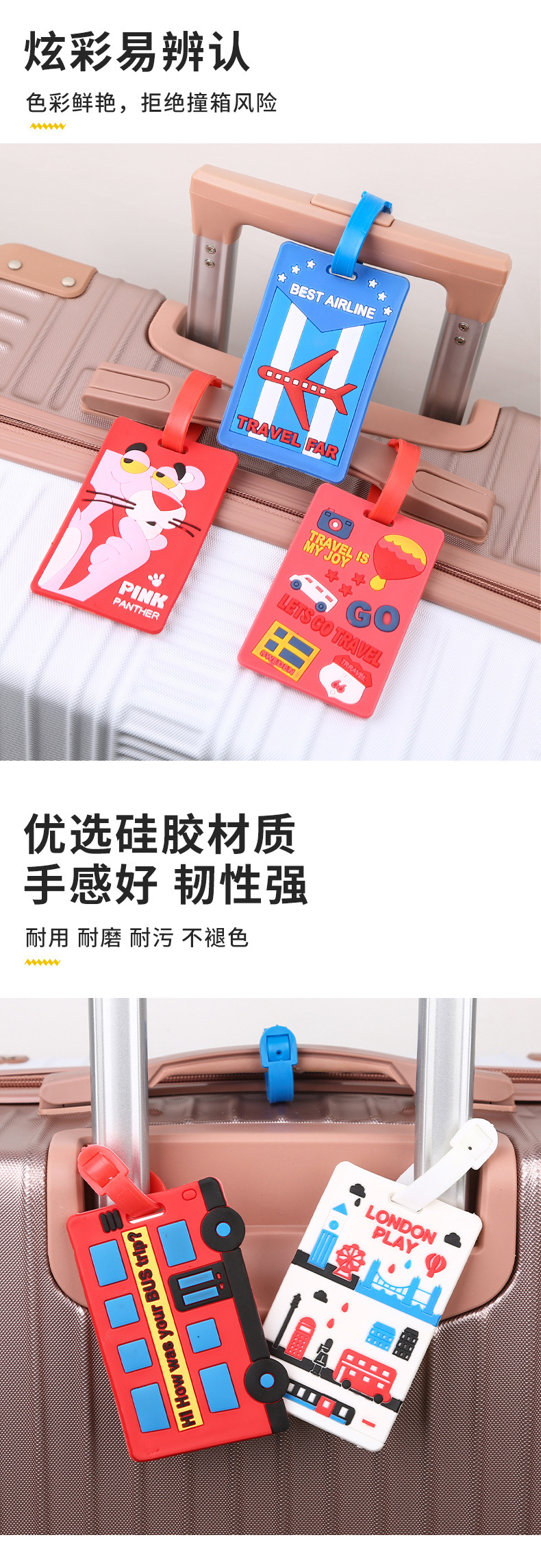 行李牌定制卡通硅胶行李挂牌箱包标识牌出行防丢失创意旅行箱吊牌