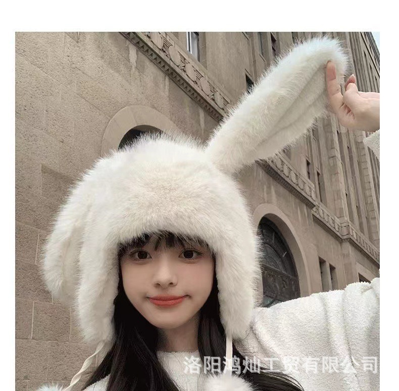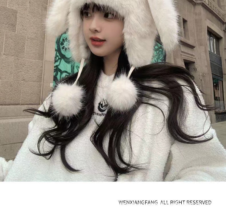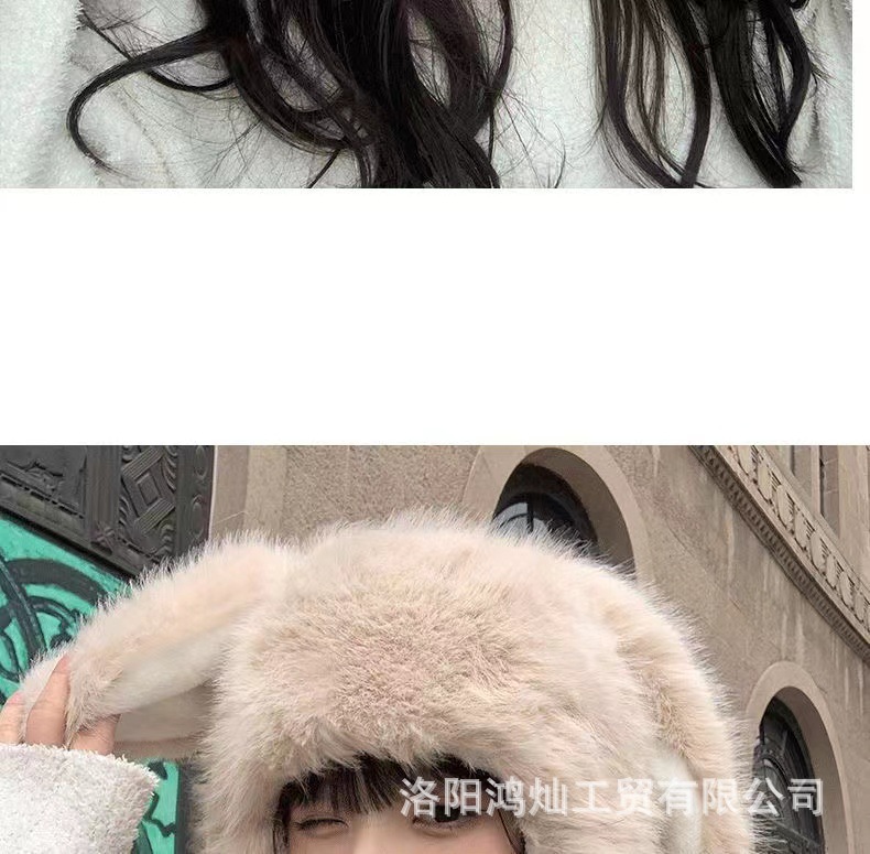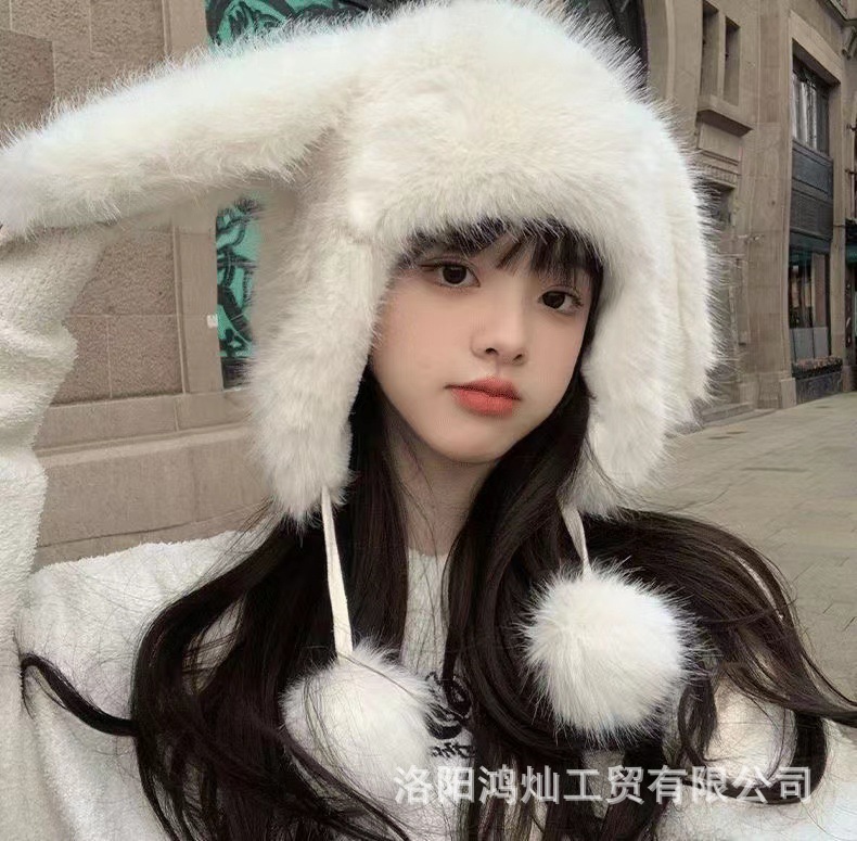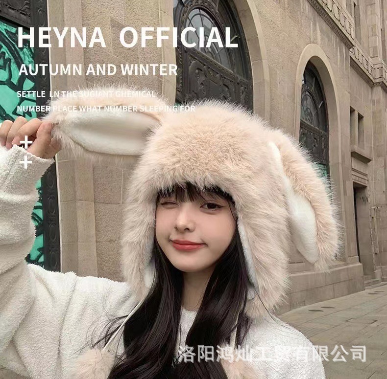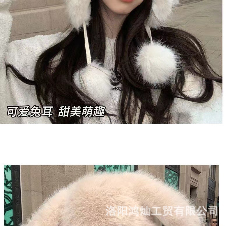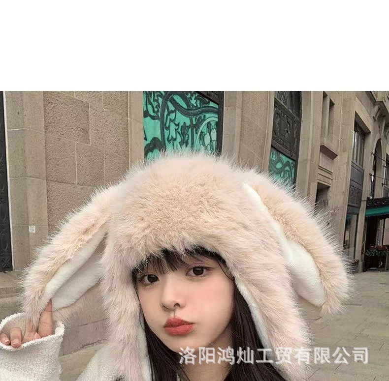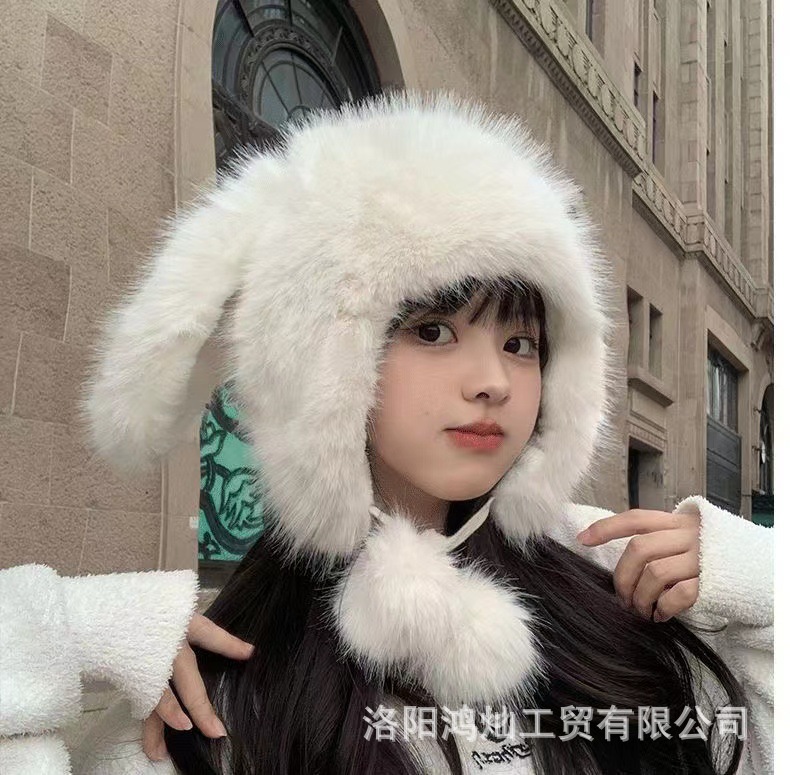 兔子雷锋帽耳朵帽子女冬狐狸毛保暖防寒护耳包头帽女狐狸毛雷锋帽
