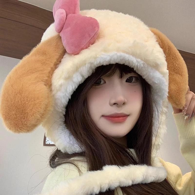 女秋冬可爱小狗卡通毛茸茸韩版纯色冬季毛绒帽子女超萌套头护耳帽