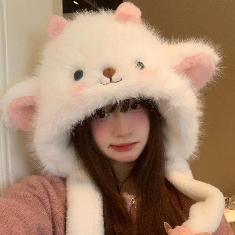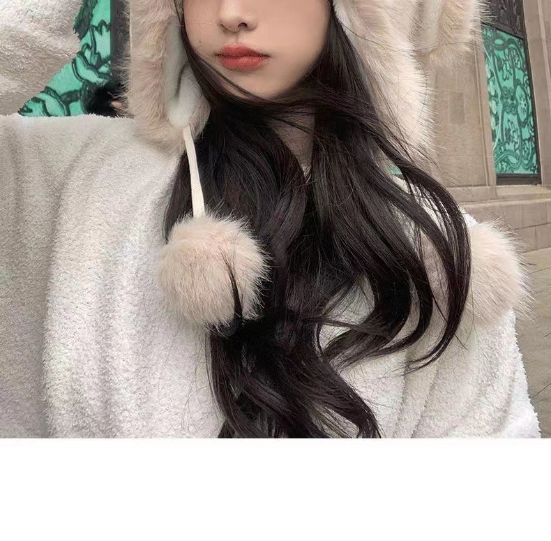 2025新款冬季毛绒小熊帽子女成人加绒加厚保暖护耳套头帽可爱雷锋