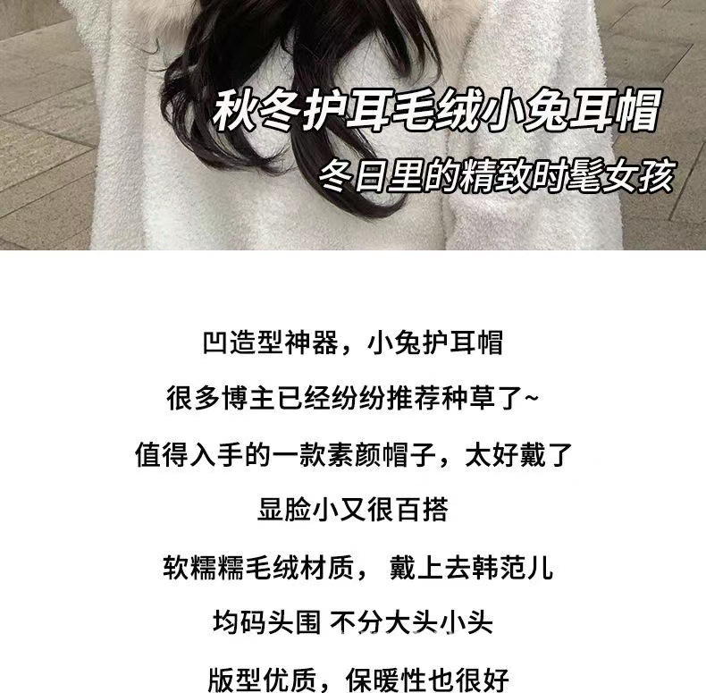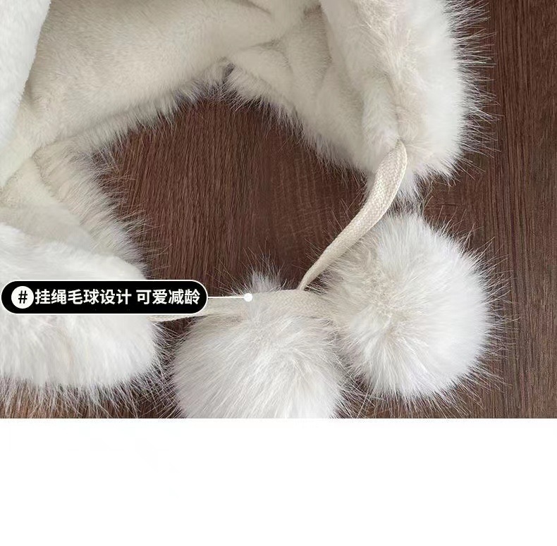兔耳朵三件套毛绒女帽子围巾手套一体秋冬加绒加厚骑车保暖新款帽