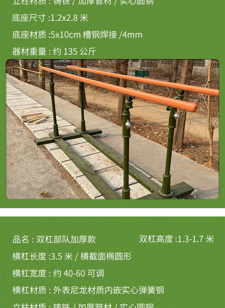 铸铁双杠训练双杠户外健身体能训练比赛双杠室外单杠双杠