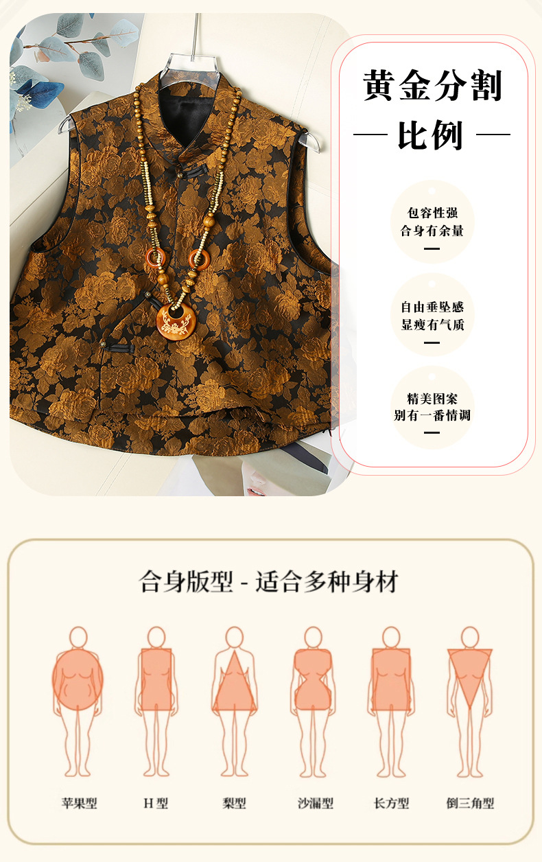 【黄金牡丹】洋气提花老钱风马甲女高级感新中式国风马甲立领马褂