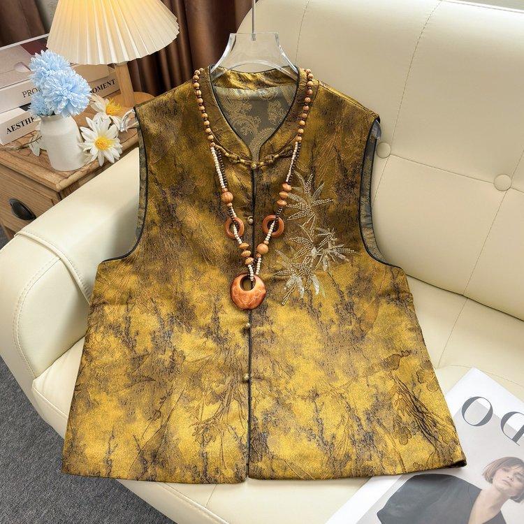 新中式时尚女装春秋冬复古刺绣马甲高档提花工艺中国风坎肩