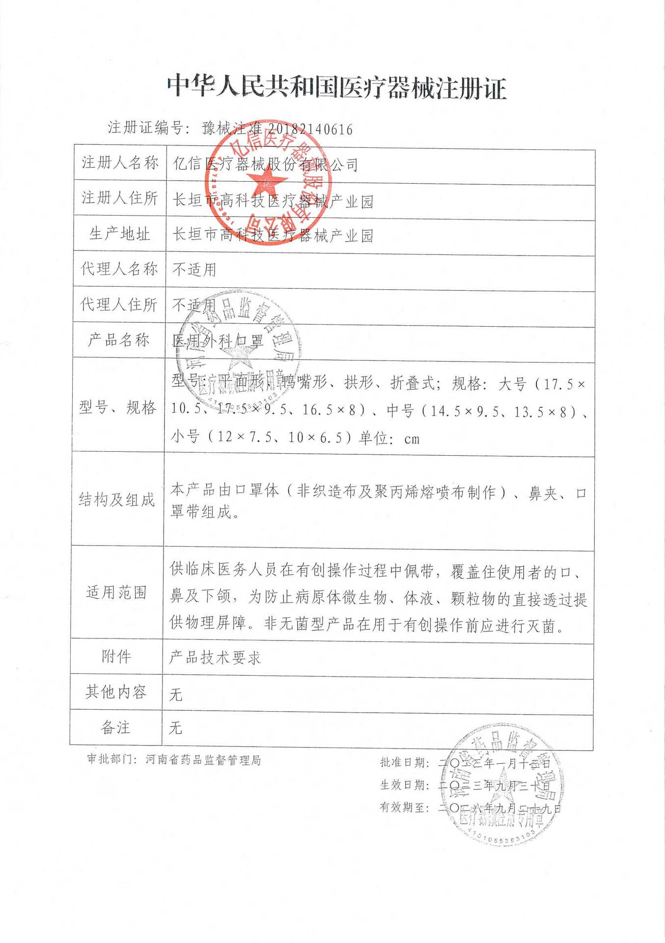 药(械)准字 豫械注准20182140616