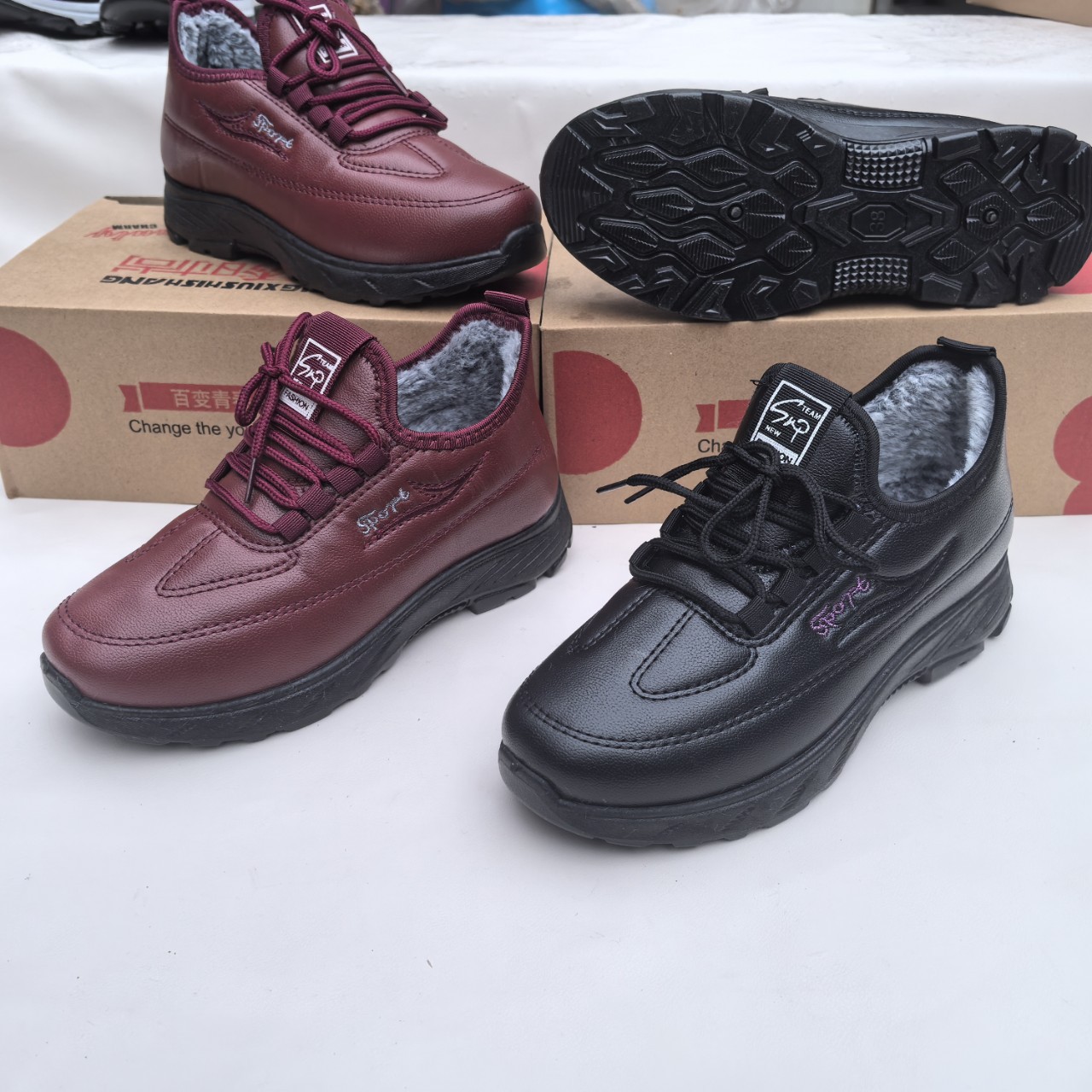 2025冬季新款皮面防水系带女式棉鞋加底片耐磨保暖时尚现货女棉鞋