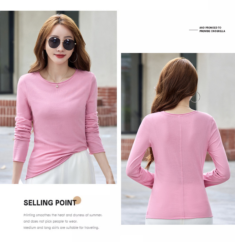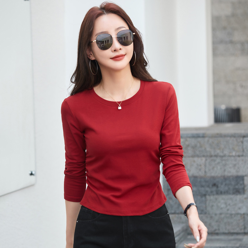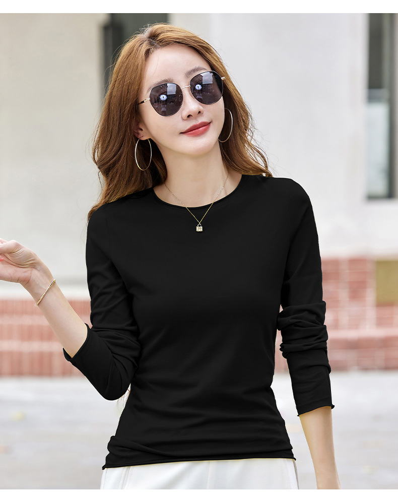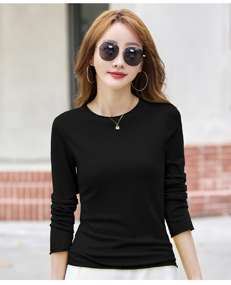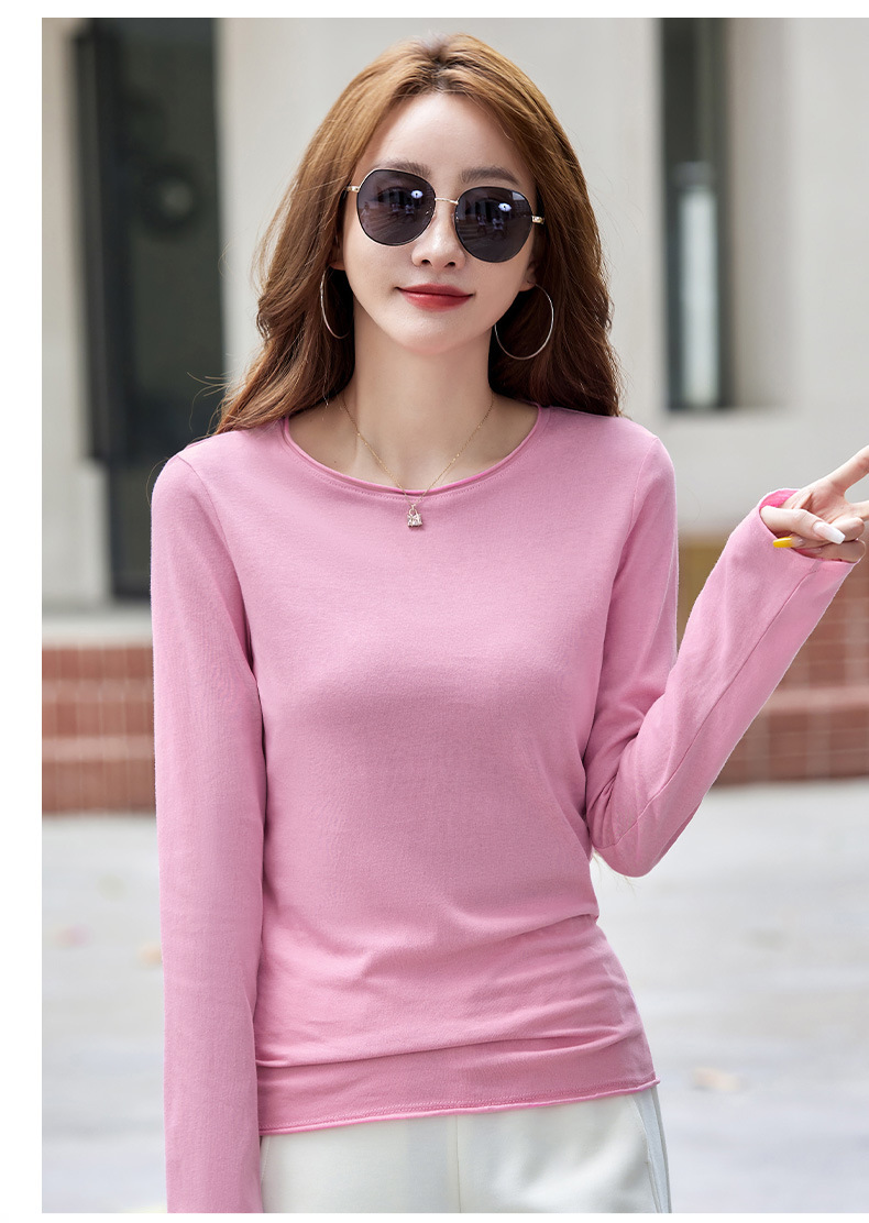 524秋季打底衫女圆领内搭2025新款显瘦长袖t恤百搭洋气上衣女纯色