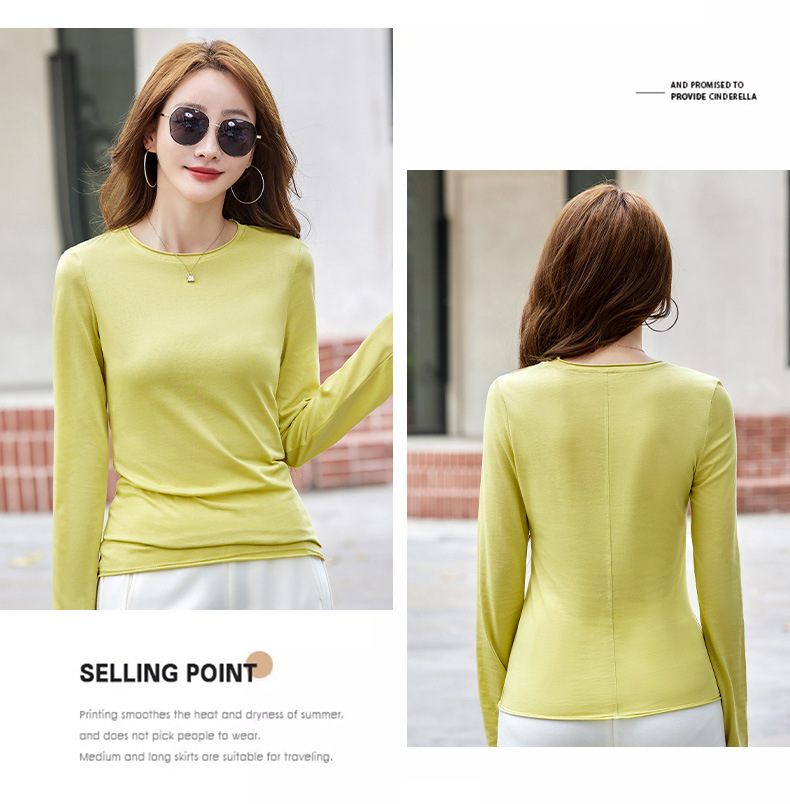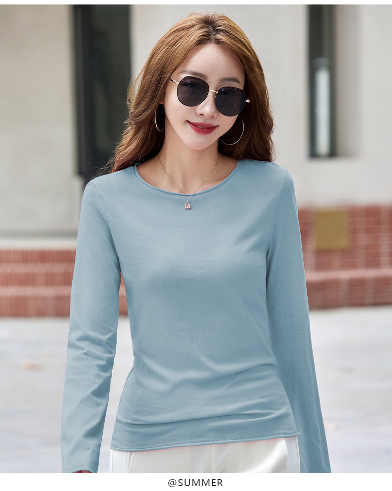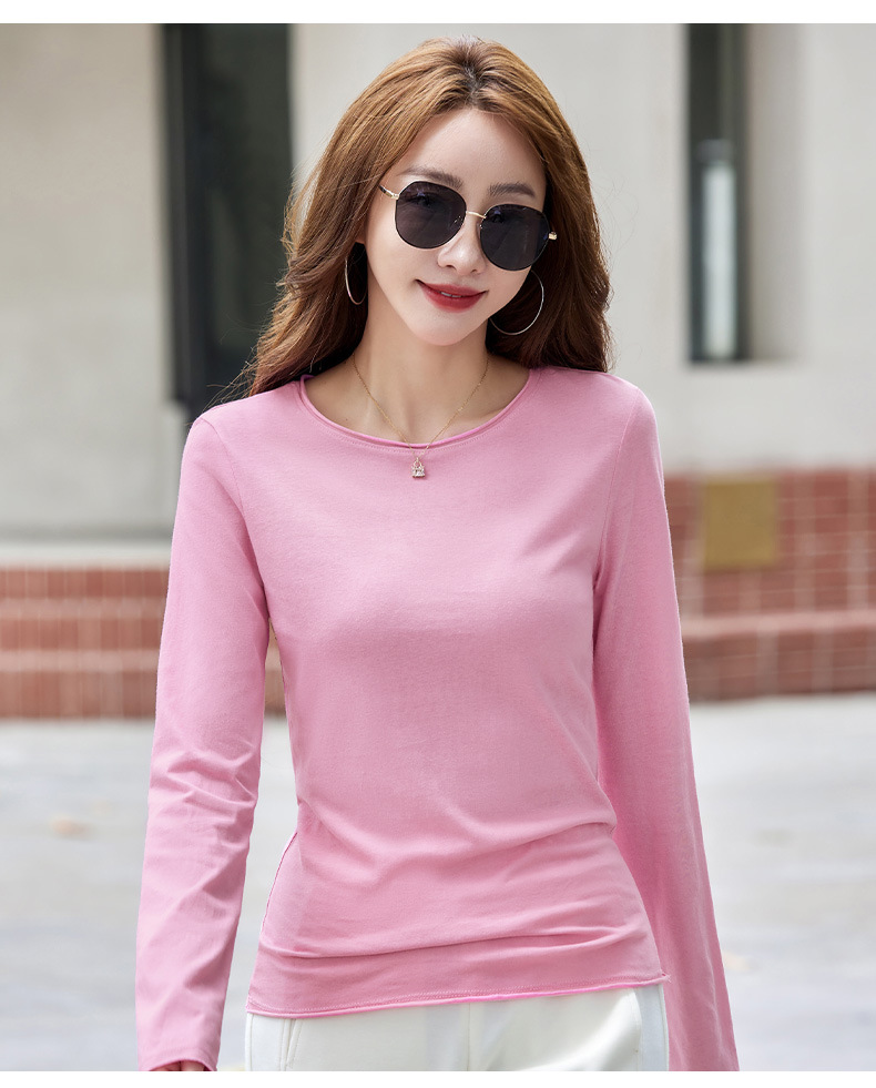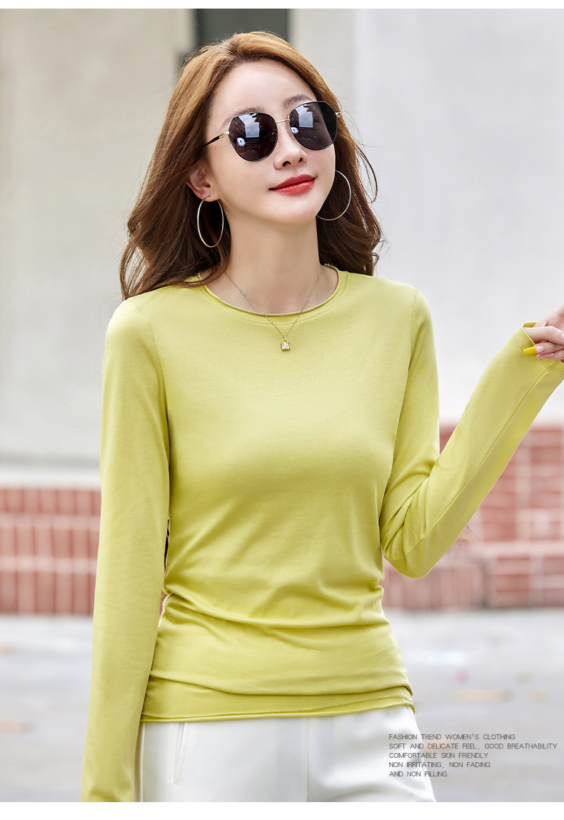 524秋季打底衫女圆领内搭2025新款显瘦长袖t恤百搭洋气上衣女纯色