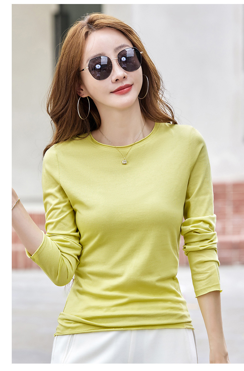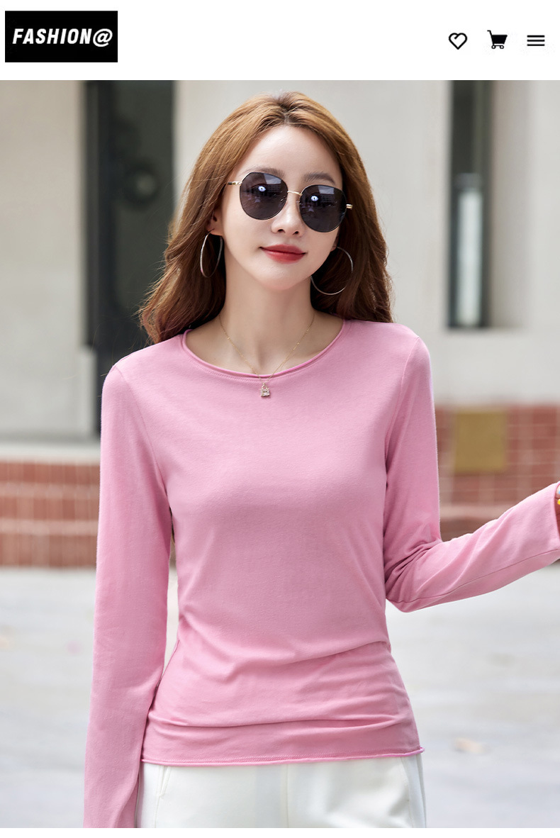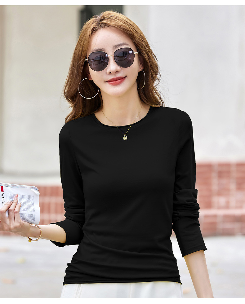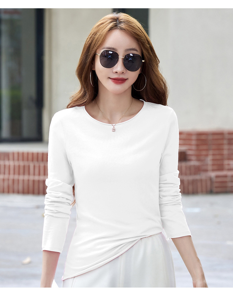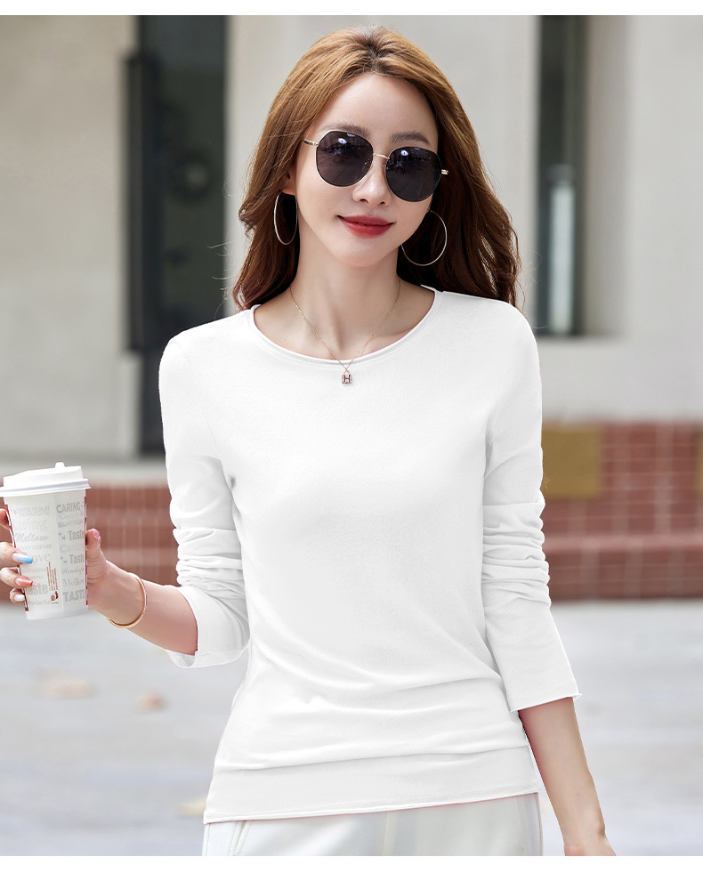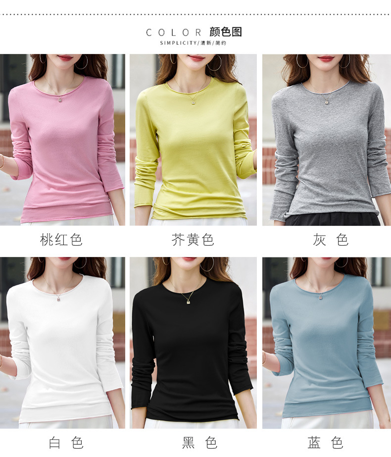 502女装纯色长袖t恤春秋新款打底衫修身显瘦白色内搭上衣百搭小衫