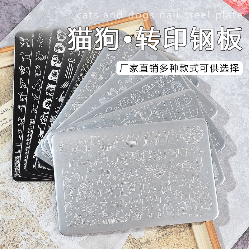 美甲印花板猫狗可爱动物钢板 Nailplate不锈钢指甲模板转印批发