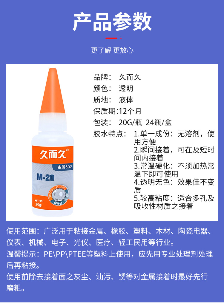 原装正品久而久M-20金属胶水929耐高温CNC定位五金磨具磁材强力胶
