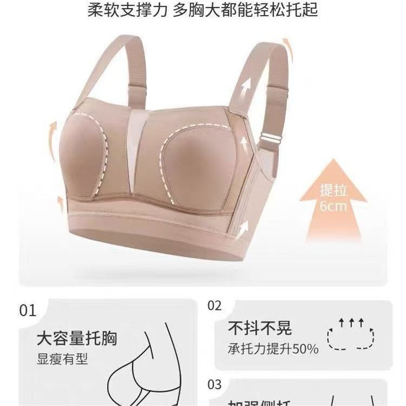 大胸显小防下垂文胸无钢圈大码无痕调整美背内衣防下垂收副乳胸罩