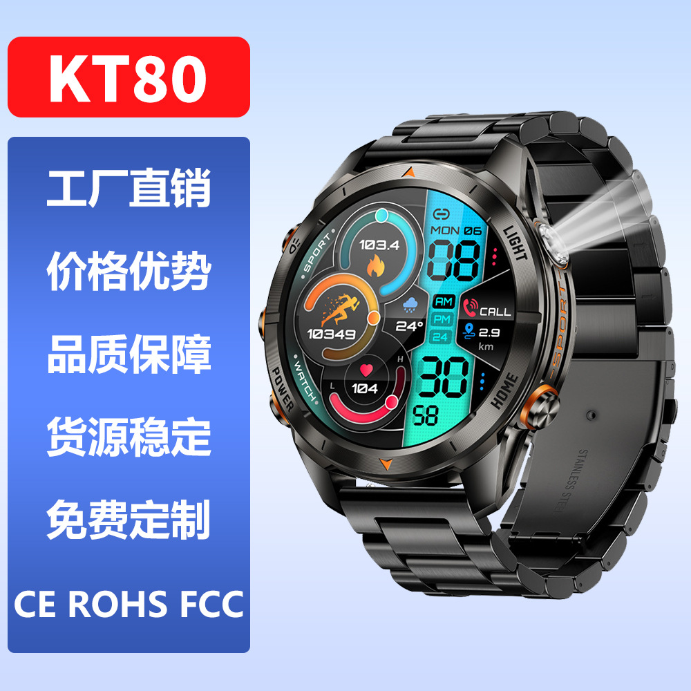 Kt 80スマート腕時計インチ高精細スクリーン超大型電池航続bluetooth通話屋外灯3atm防水
