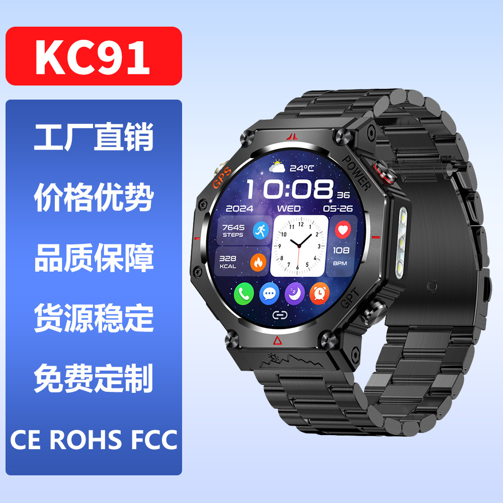 KC91 スマートウォッチ Bluetooth 通話内蔵 GPS 高地気圧コンパス LED ライト AI ダイヤル CHAT GPT
