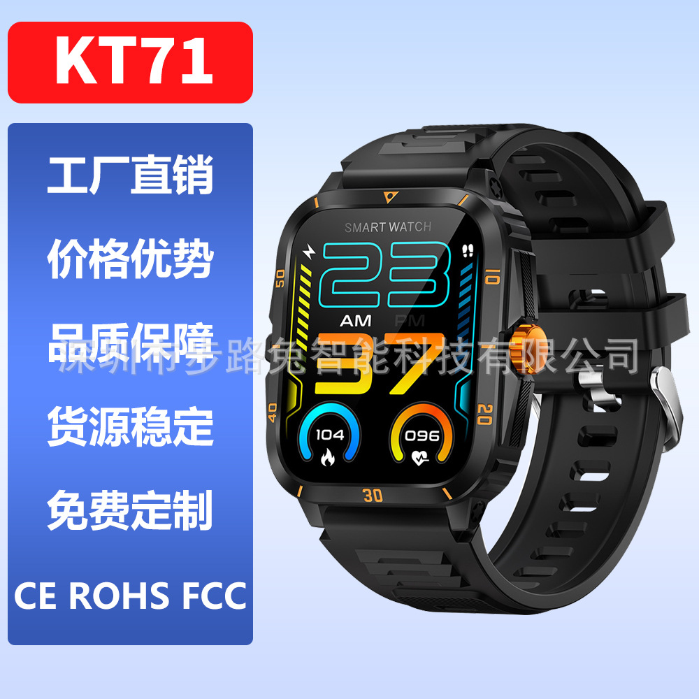 Temu爆型kt 71スマート腕時計bluetooth通話心拍計ステップ血酸素3ATM防水屋外三防腕時計