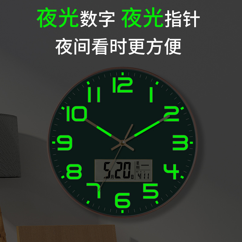 カラフルな夜光掛け時計現代壁掛け装飾カレンダー時計リビング時計シンプルな掛け時計静音スキャンムーブメント