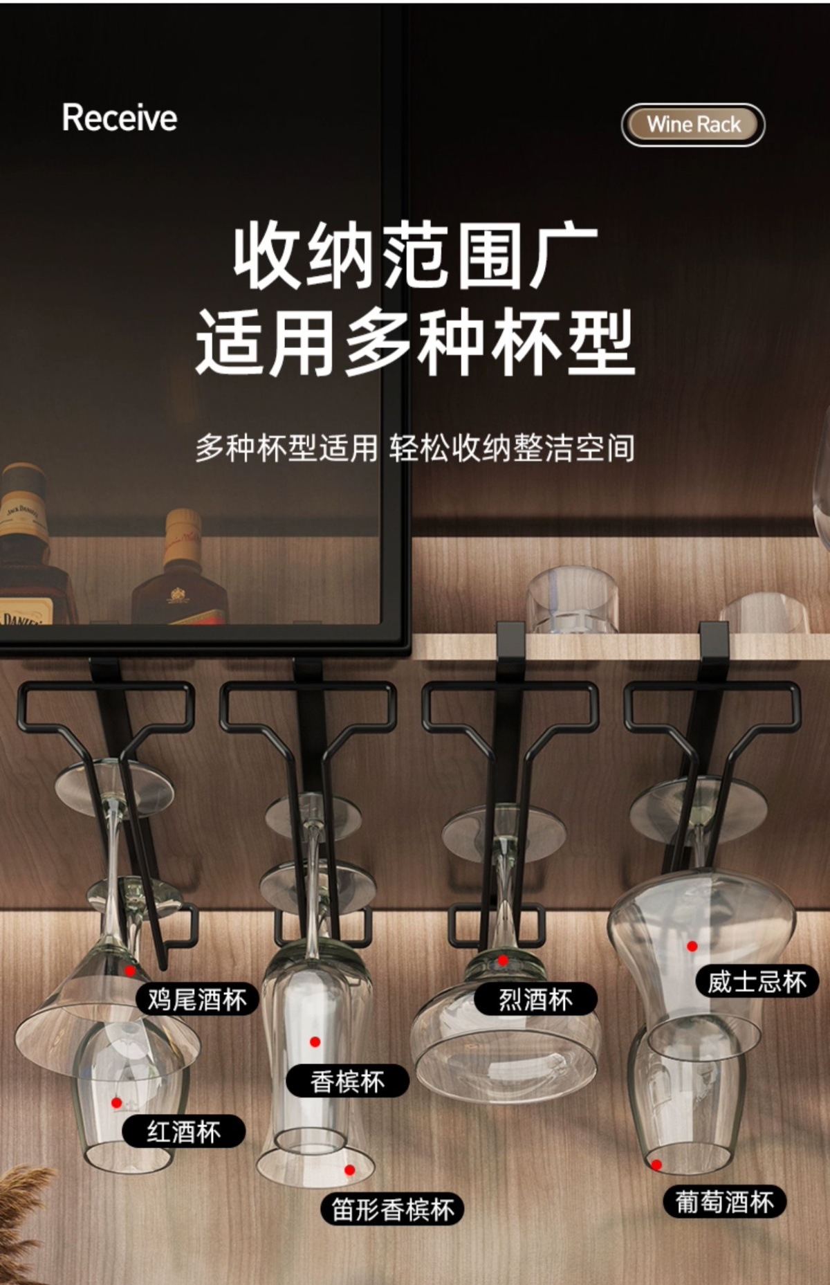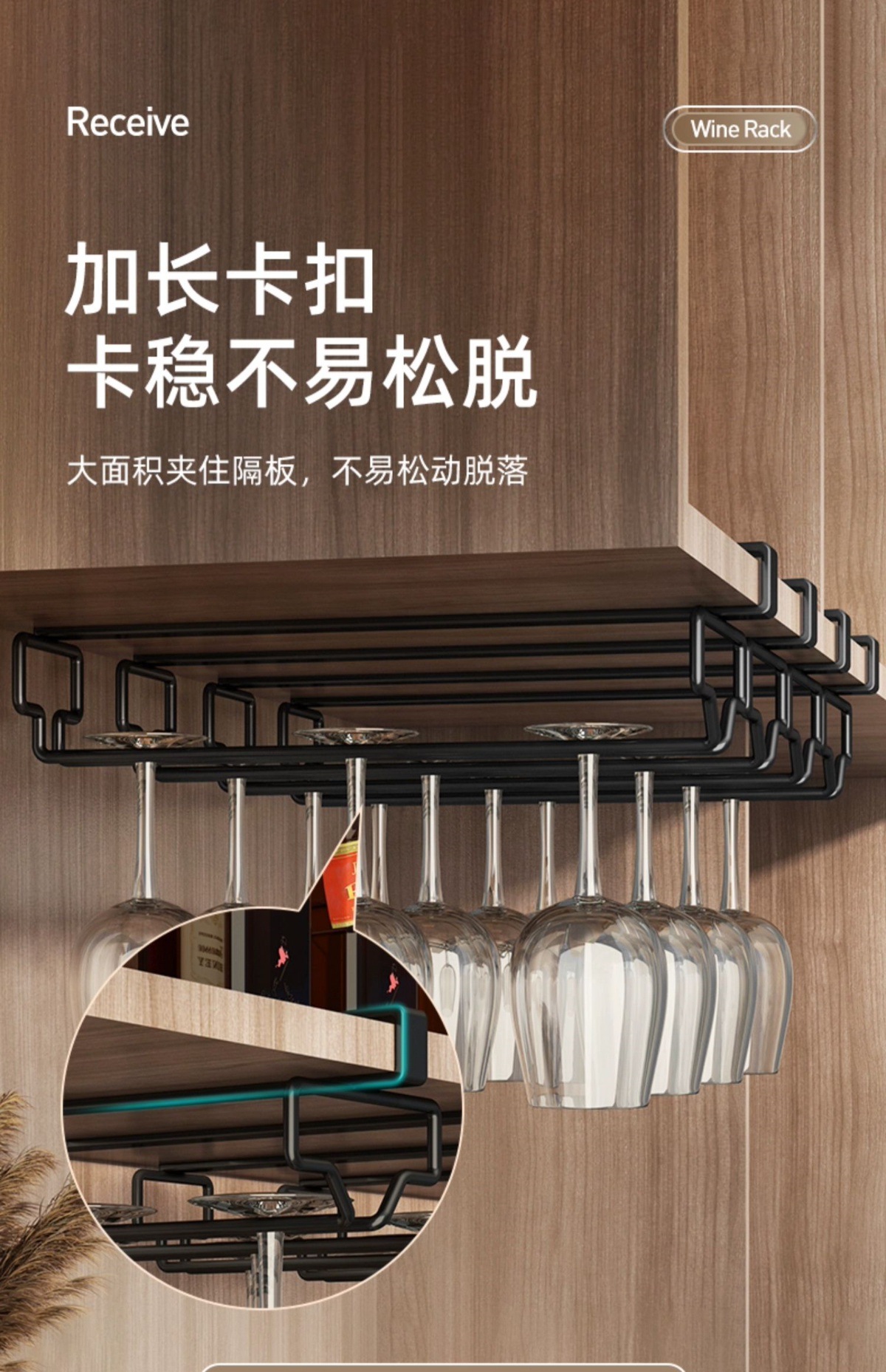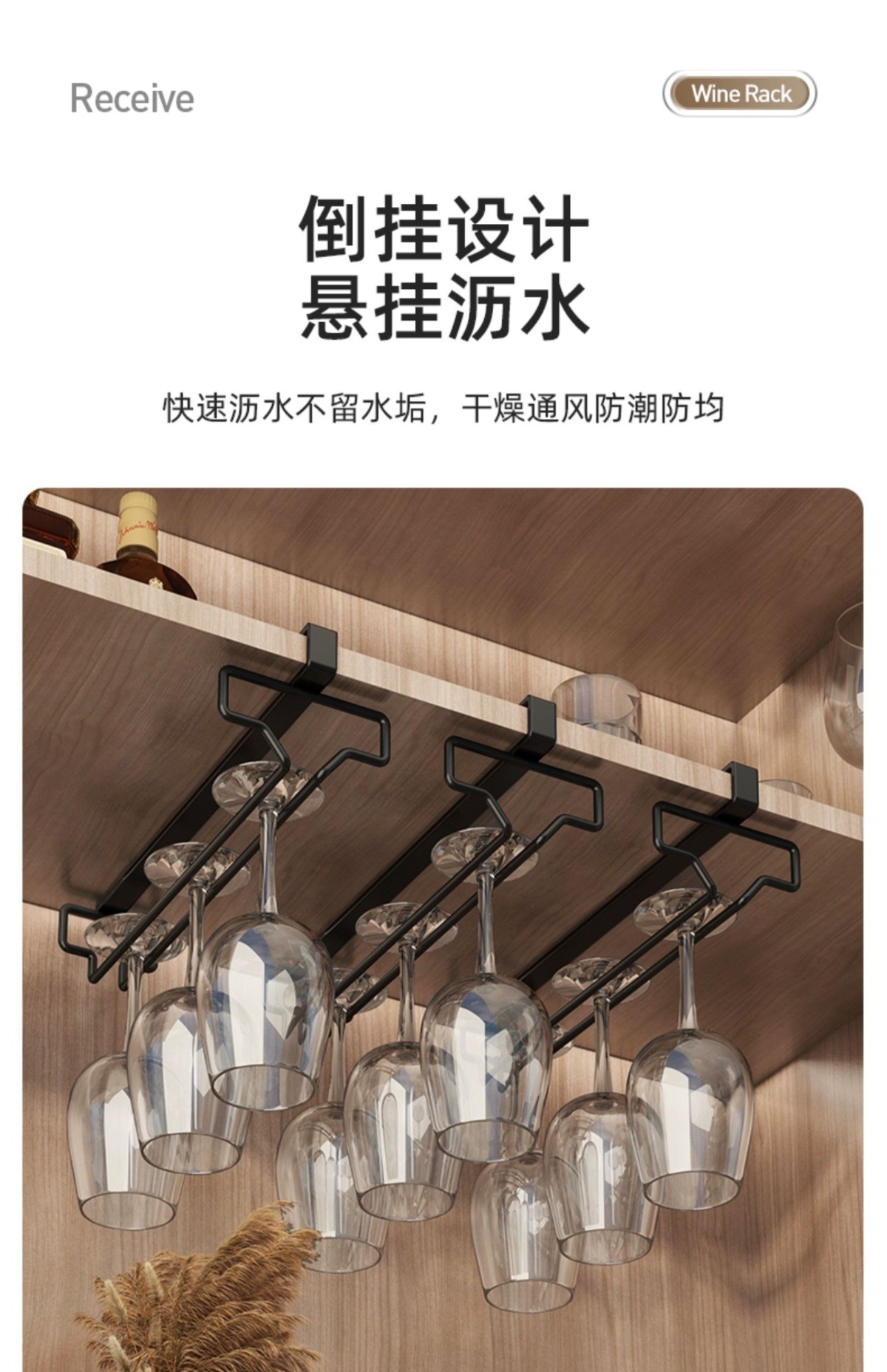 供应红酒杯架免打孔倒挂架高脚杯挂架橱柜悬挂架轻奢高档摆件