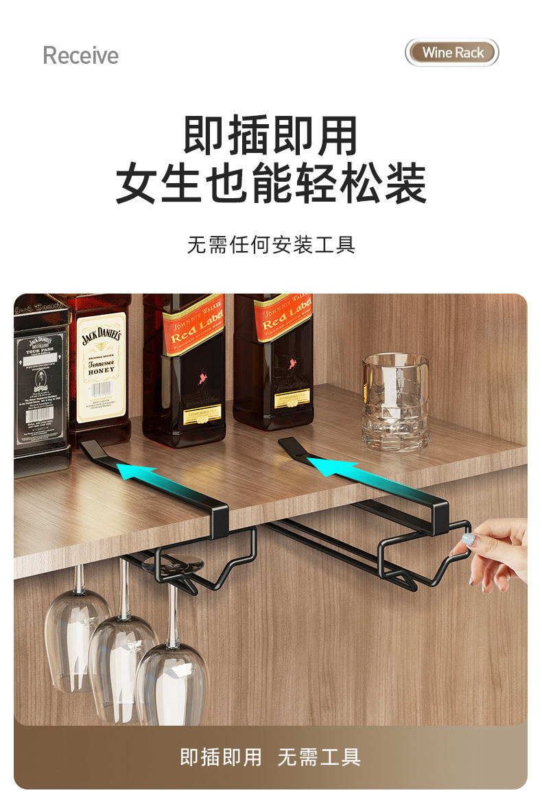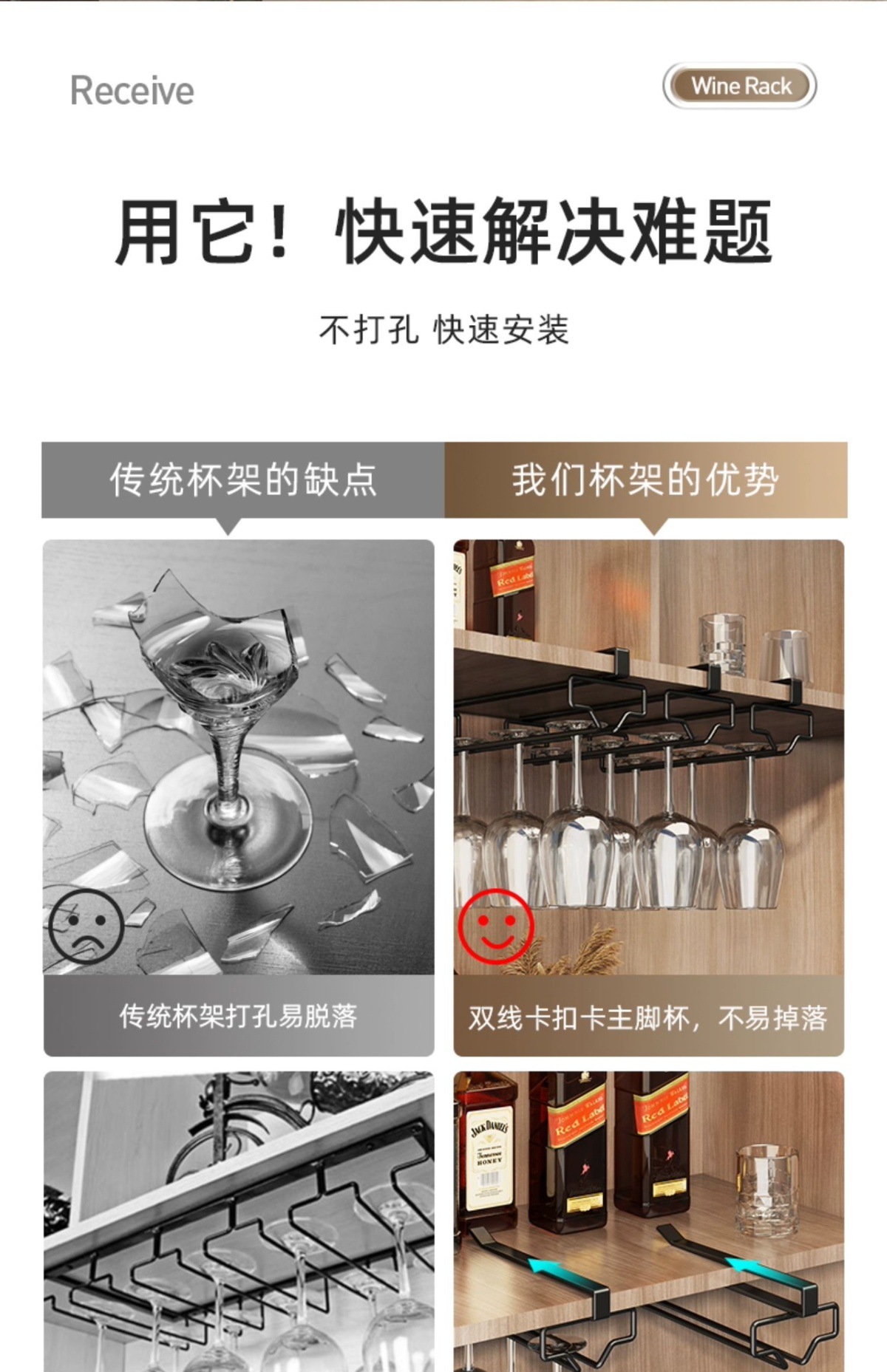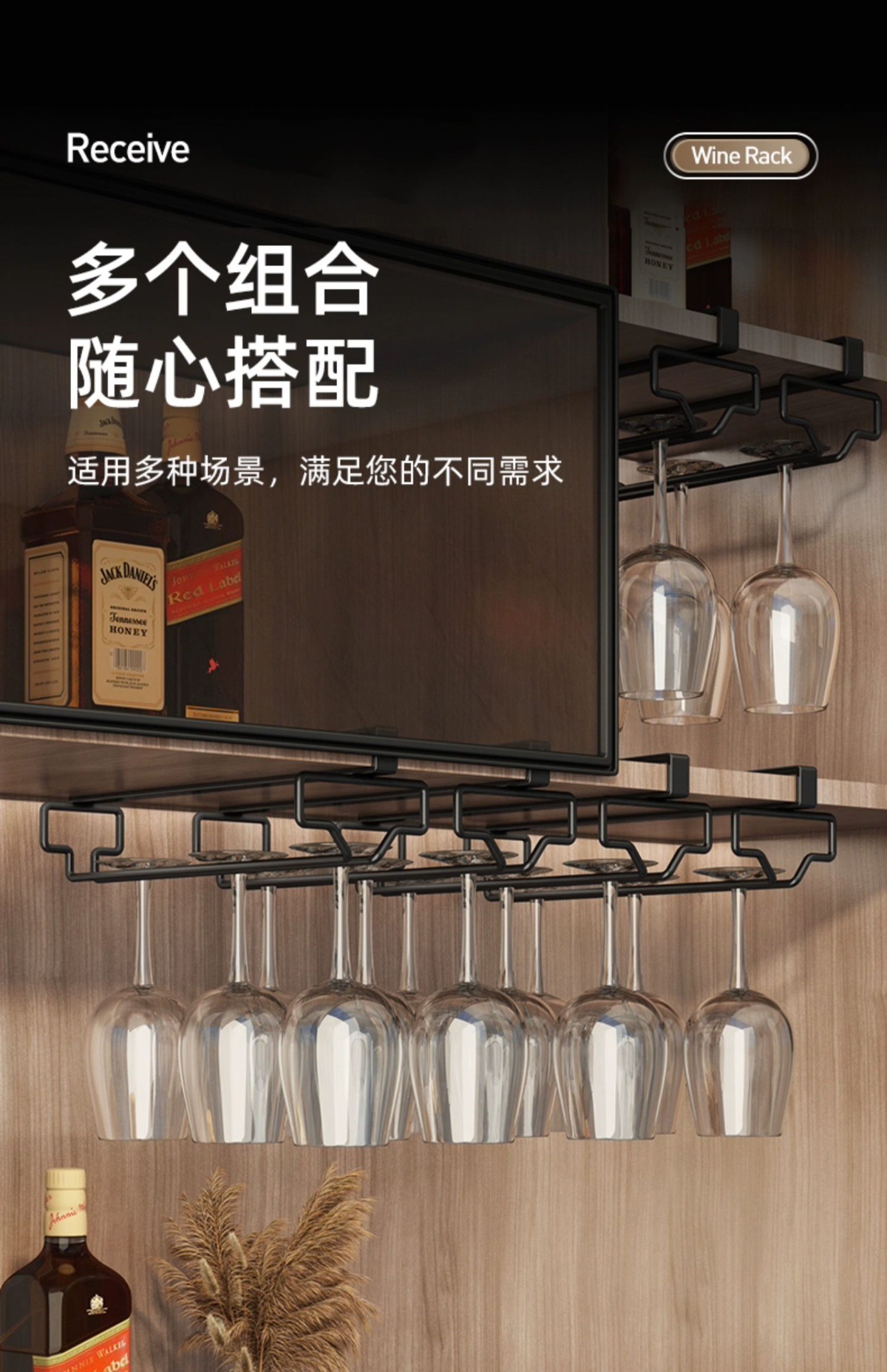 供应红酒杯架免打孔倒挂架高脚杯挂架橱柜悬挂架轻奢高档摆件