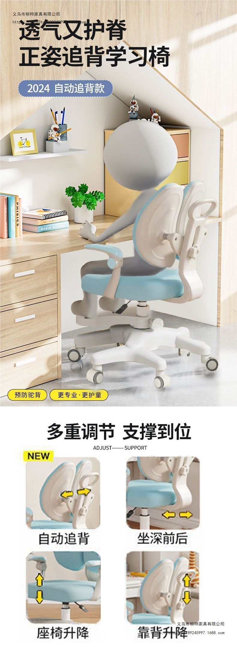 写字小学生椅护脊矫正追背坐姿家用椅子儿童学习椅升降自动可座椅