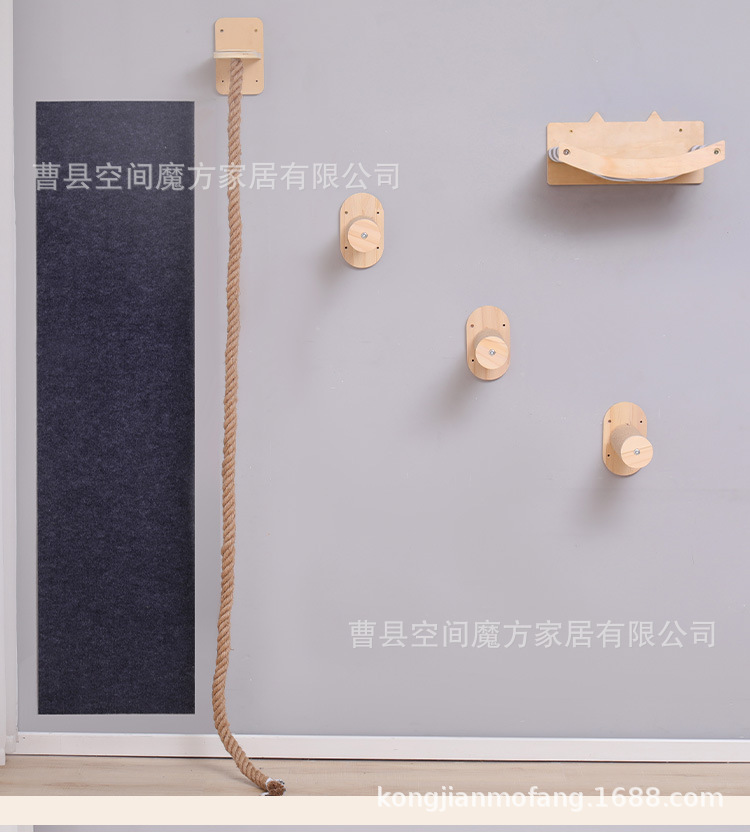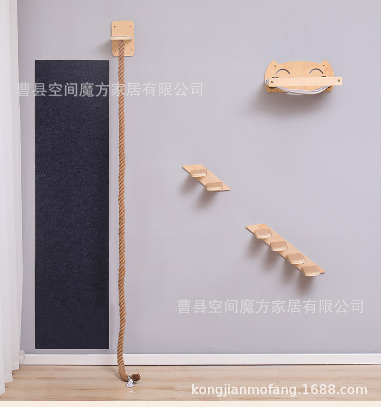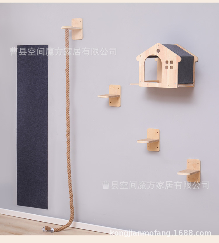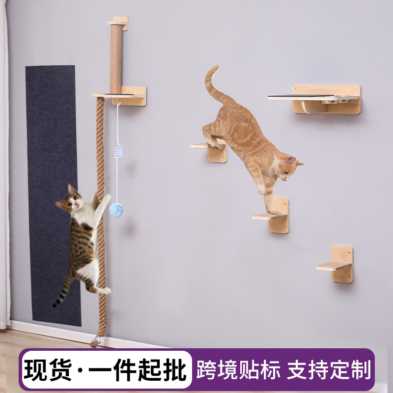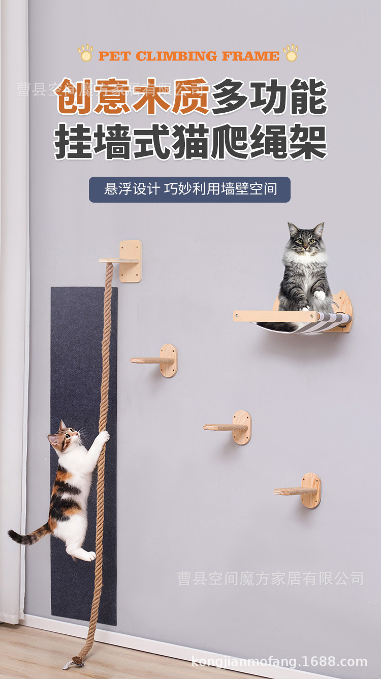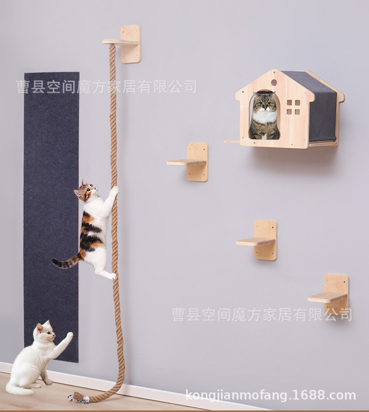 跨境现货壁挂上墙松木通天攀爬猫抓绳可魔抓猫抓柱跳台猫窝全套