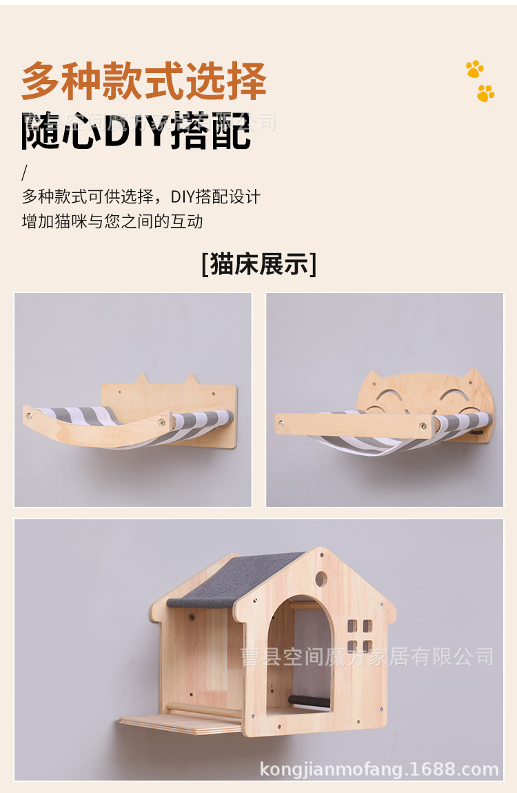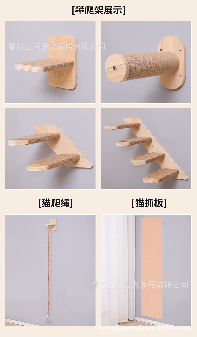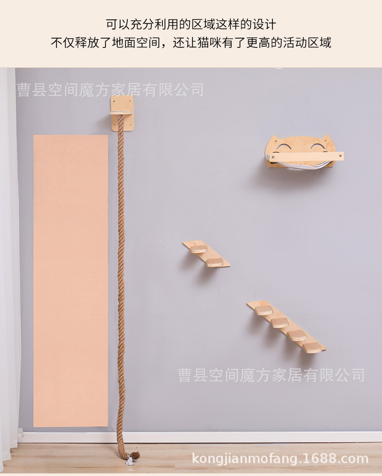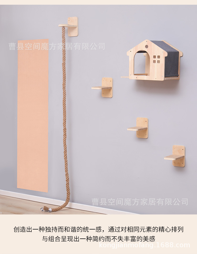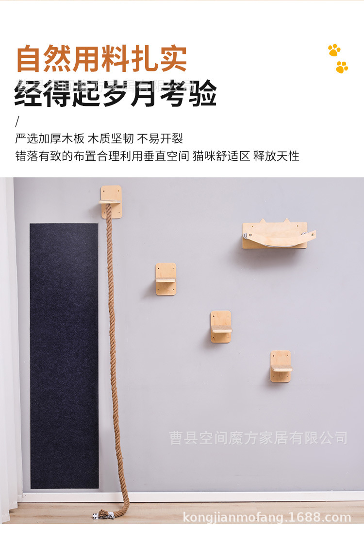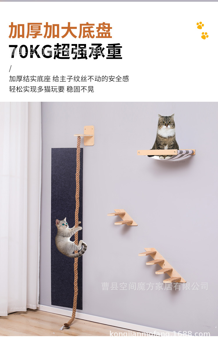 跨境现货壁挂上墙松木通天攀爬猫抓绳可魔抓猫抓柱跳台猫窝全套