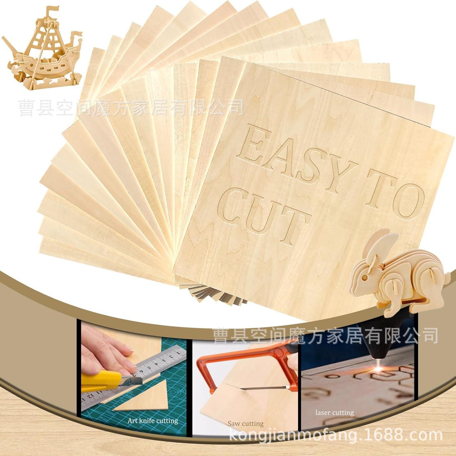 クロスボーダー木製ブランク木製スライス正方形木板レーザーカット木製木材バーニング建築モデル染色DIY