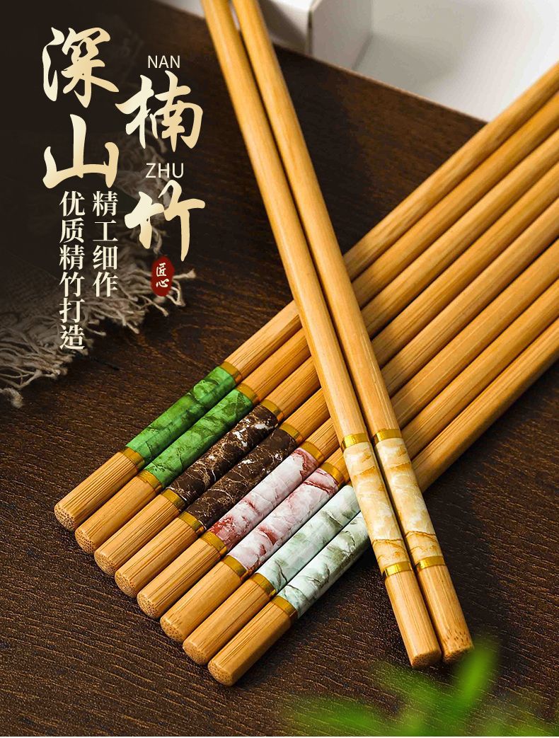 筷子家用高档耐高温竹木筷成人防霉防滑一人一筷分色家庭卫生餐具