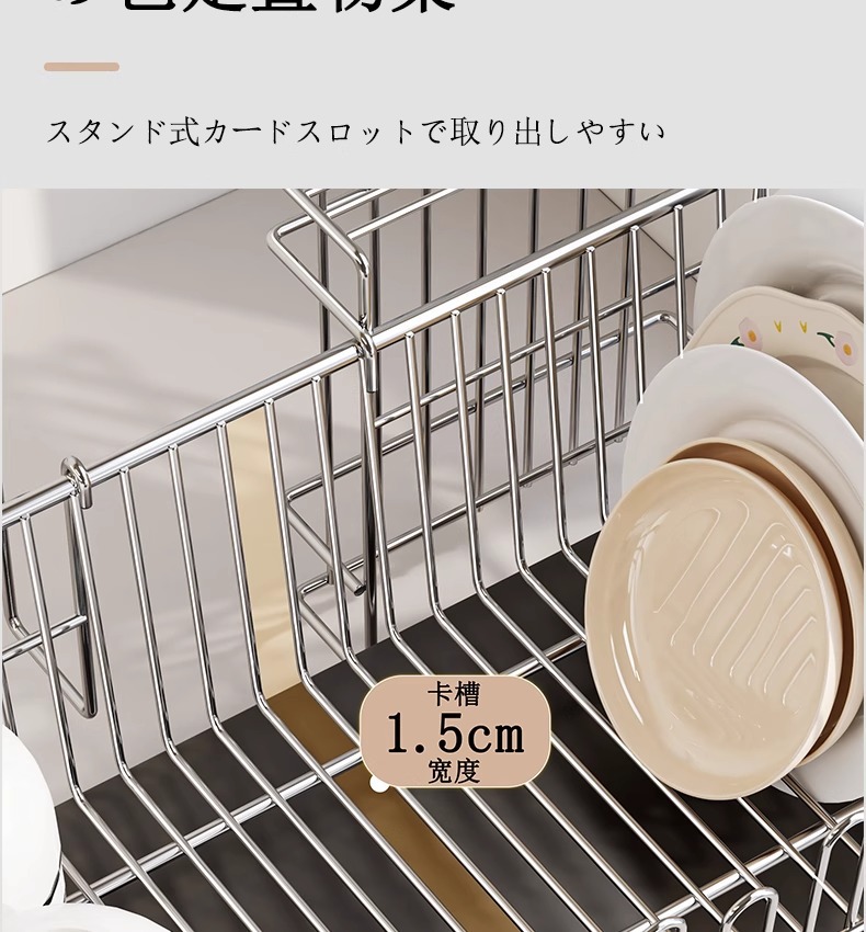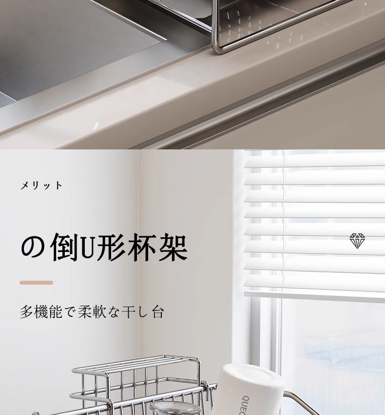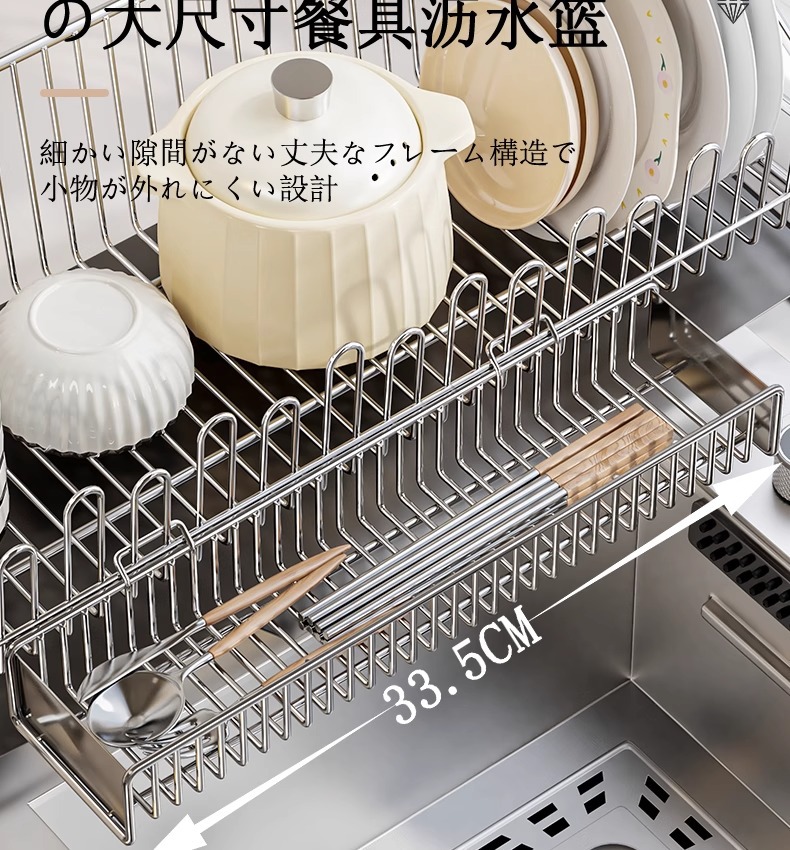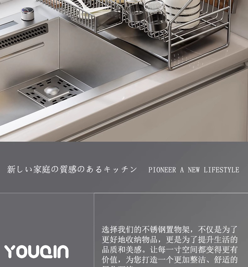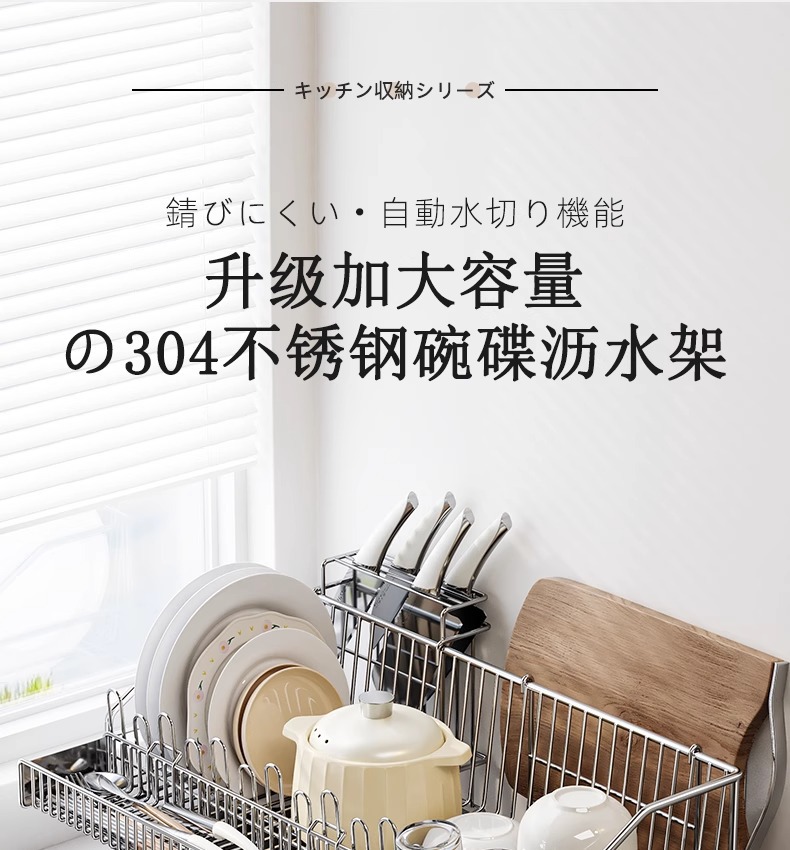 Youqin キッチン排水ラック 304 ステンレス鋼の食器収納ラック多機能家庭用キッチン食器排水バスケット