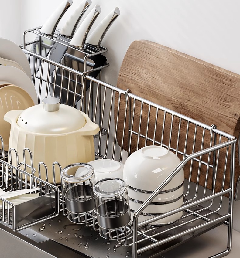 碗碟收纳架304不锈钢沥水架家用多层碗架厨房置物架放碗盘筷碗柜