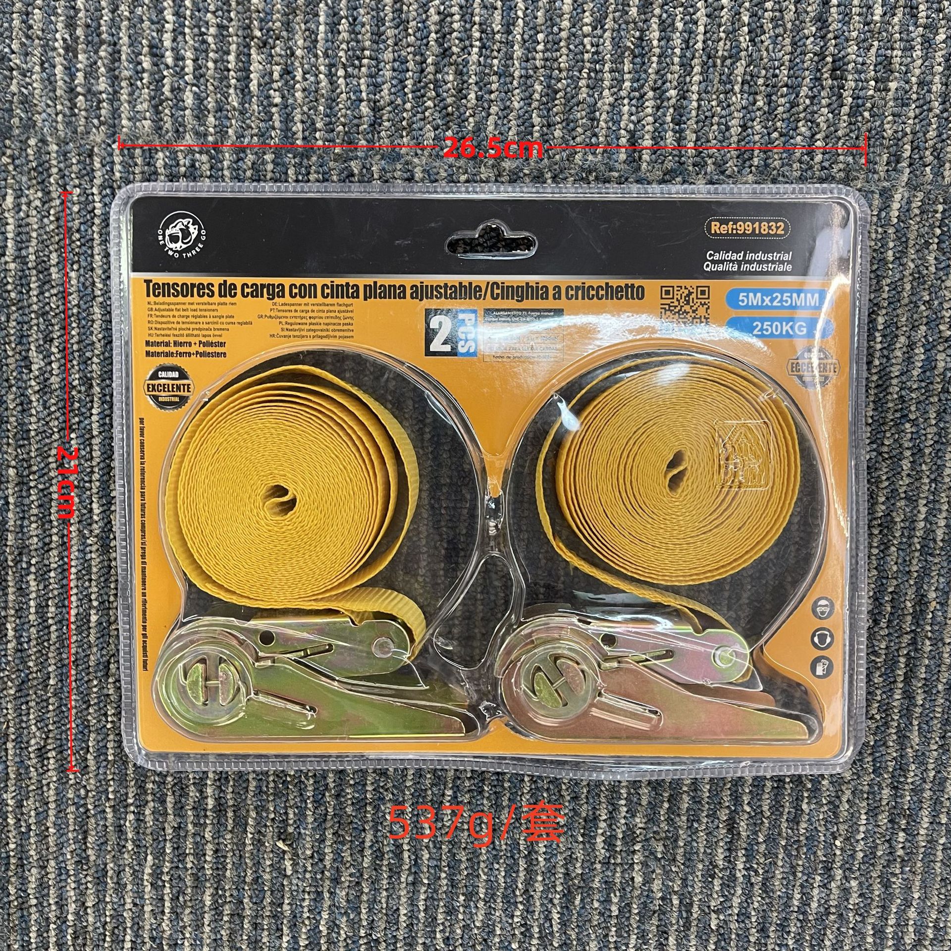 规格 1寸5M 拉紧器黑带 双钩800kg,1寸5M 拉紧器黄带 500kg,2cp 1寸5M拉紧器黄带无钩 250KG,5M黑色压扣捆绑带130KG,2pc 2.5M黄色压扣捆绑带130KG,1寸4.5M黄带拉紧器 塑架装
