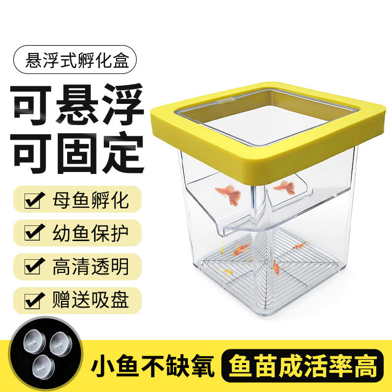 亚克力漂浮孵化隔离盒方形小型鱼苗母鱼孵化器多功能孔雀鱼繁殖器