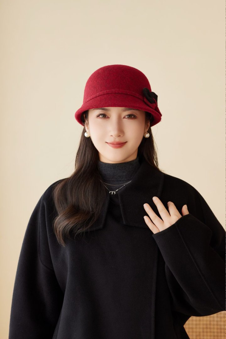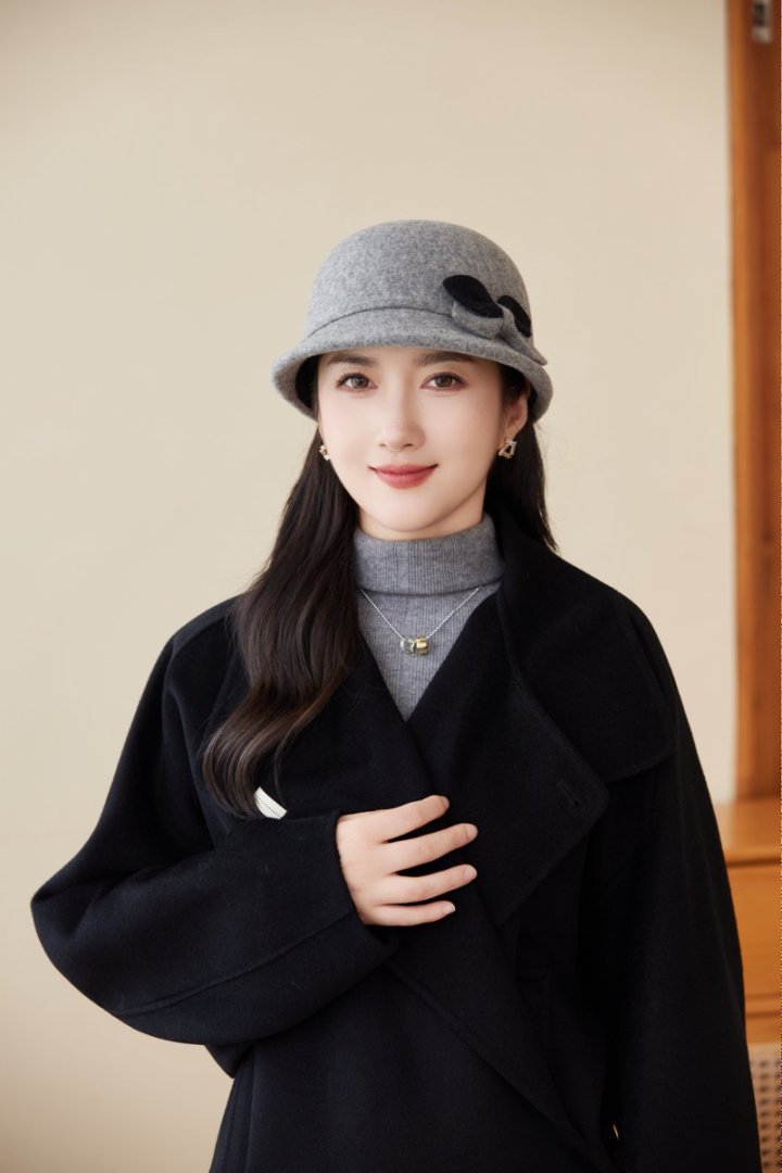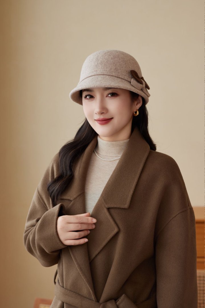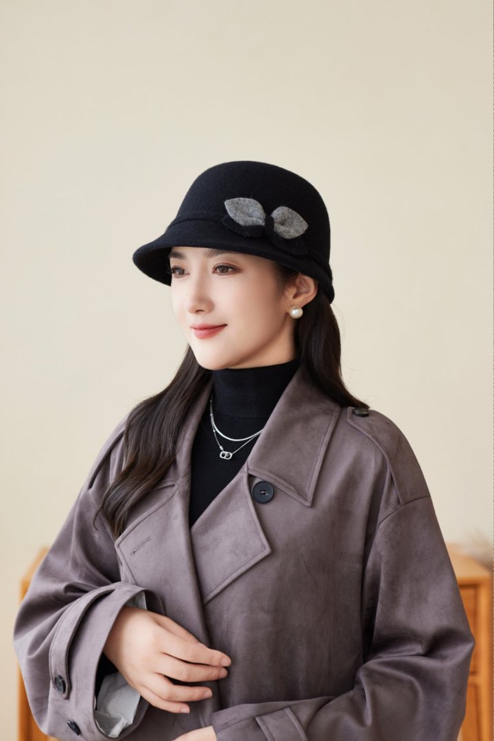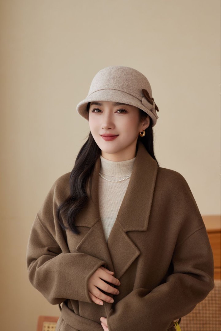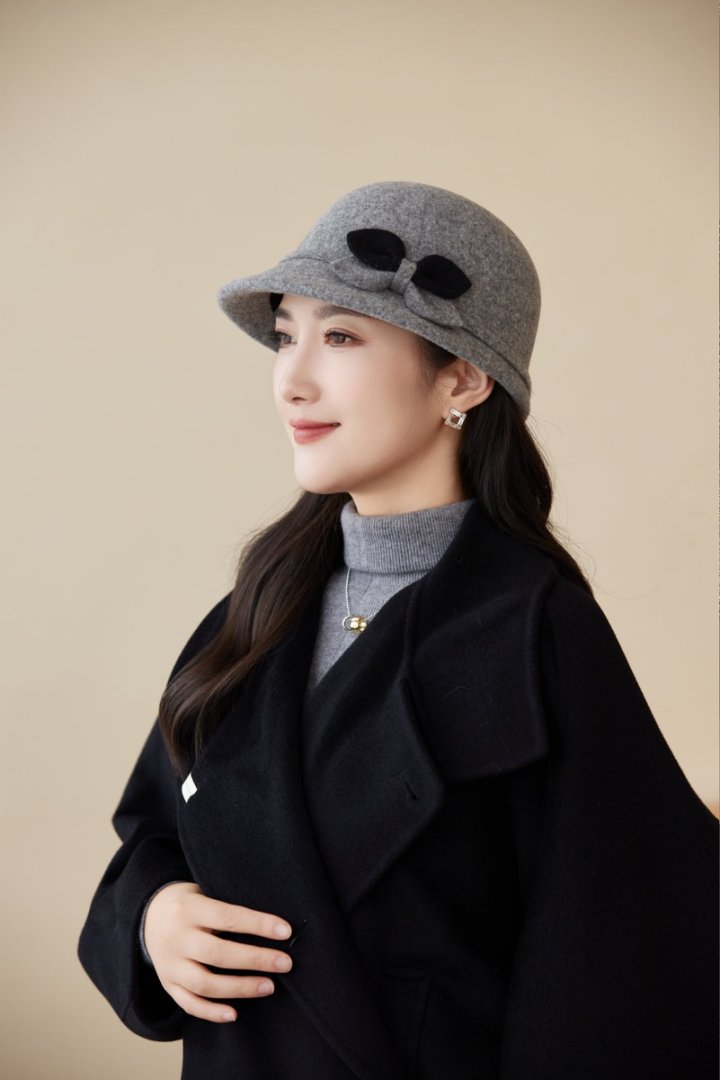 秋冬季显脸小盆帽复古赫本风蝴蝶结渔夫帽女士优雅羊毛呢时装盆帽