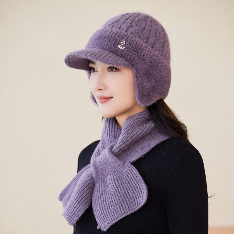 冬天帽子女加绒加厚保暖冬季2025新款户外骑车护耳针织毛线鸭舌帽