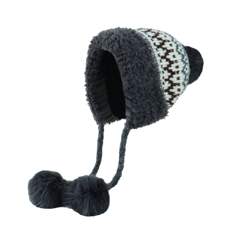 民族風毛糸帽の子供2024新型秋冬耳保護ニット帽の頭周り保温冷帽毛玉冬帽