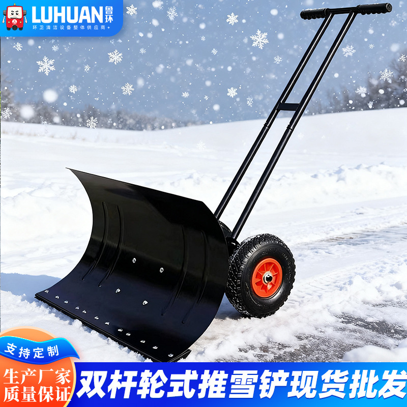 ダブルロッド全鋼ホイール式除雪シャベル手押し式雪かき除雪板タイヤ車輪吹雪シャベル雪かき板除雪器